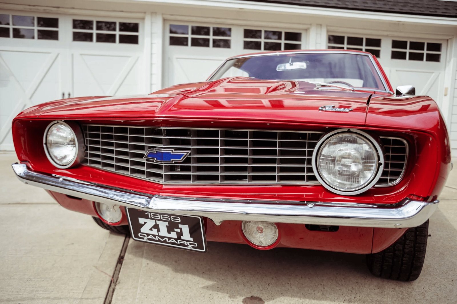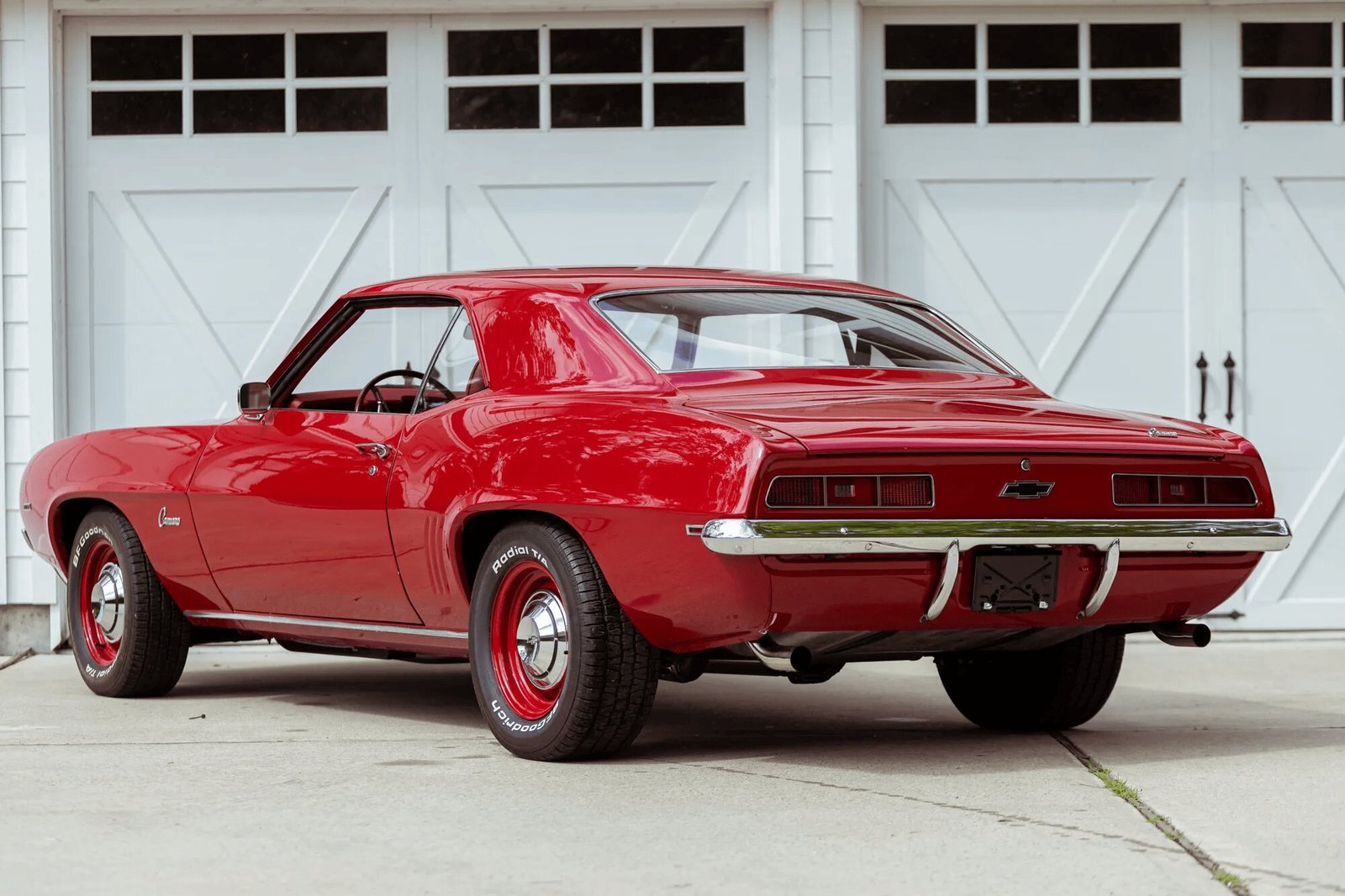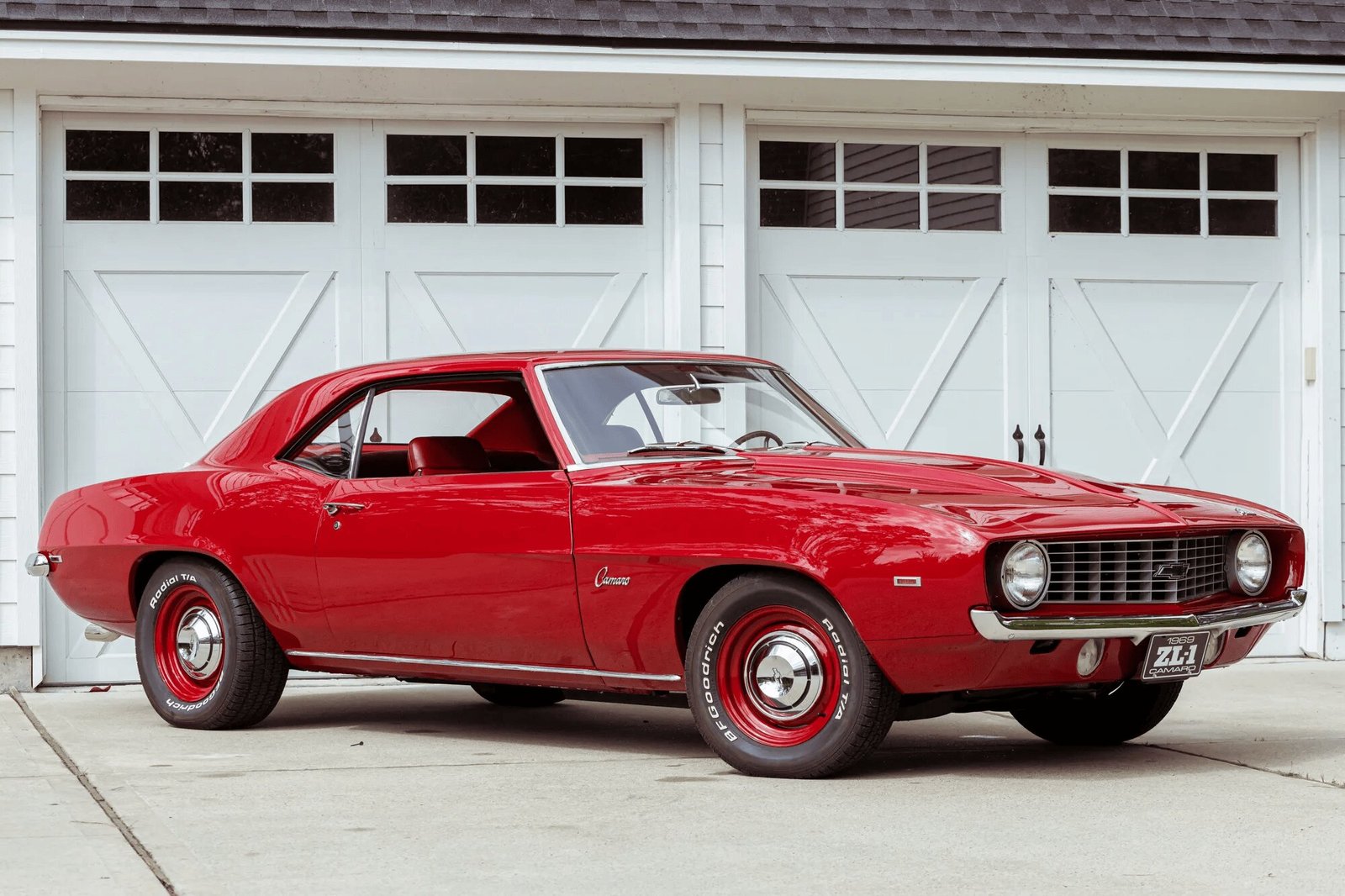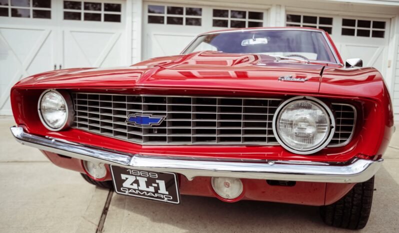 This 1969 Chevrolet Camaro coupe was refurbished in the style of a COPO ZL1 Camaro, and work included repainting the body, reupholstering the interior, and installing a 427ci V8, a Muncie four-speed manual transmission, and a 12-bolt rear axle with a limited-slip differential. The car is finished in red over red vinyl upholstery and equipment includes a cowl induction hood, power steering, power-assisted front disc brakes, 15″ body-color steel wheels, power steering, a Hurst shifter, a Rockford Fosgate amplifier, aftermarket speakers, and a concealed Bluetooth audio receiver.