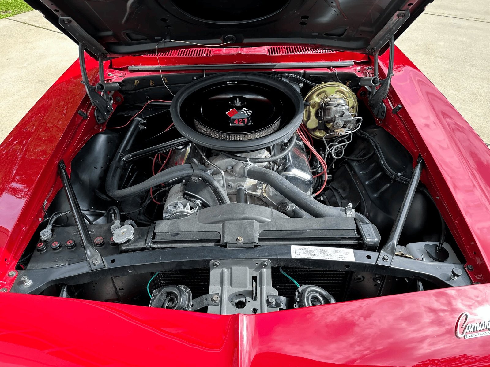 The car left the factory with an inline-six, and the aluminum 427ci V8 have been installed during the refurbishment and fitted with Diamond Racing pistons, a Comp Cams hydraulic roller camshaft, a Callies crankshaft and connecting rods, a Winters intake manifold and cylinder heads, and ported exhaust manifolds.