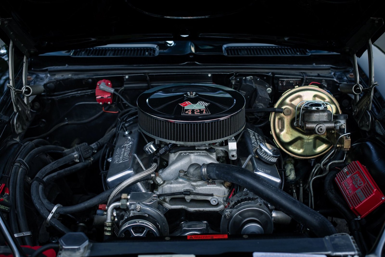 A 427ci V8 engine sourced from Scott Shafiroff Racing was fitted and is feature a Dart block, a Manley Performance crankshaft, Molnar rods, AFR 210cc cylinder heads, 10.5:1 compression, and hydraulic roller.