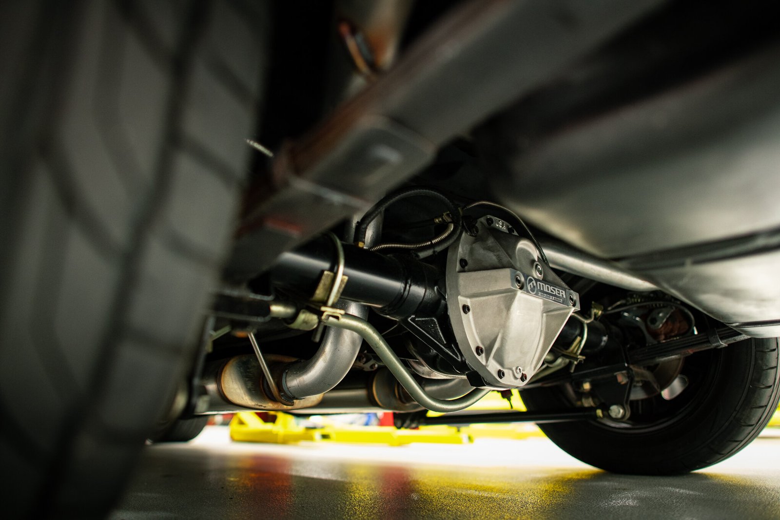 Power is routed to the rear wheels via a Tremec six-speed manual transmission and a Moser 12-bolt rear end with an Eaton limited-slip differential, and a McLeod Racing clutch kit was fitted in 2024.