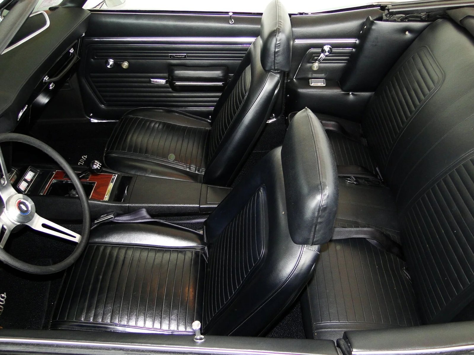 The black interior is fully restored to what it looked like in 1969.