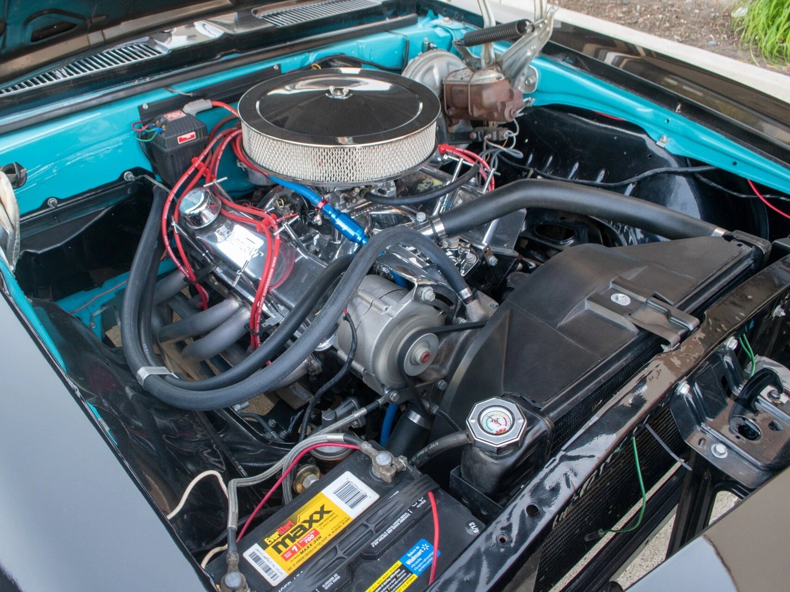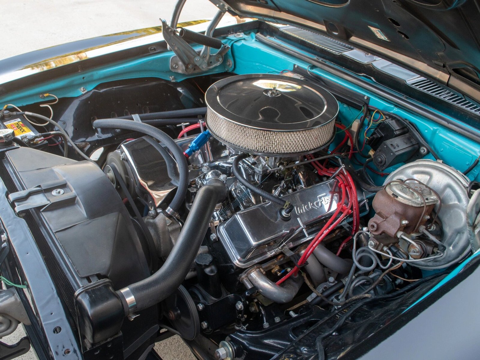 The replacement 406ci V8 features a polished air cleaner cover and Trick Flow rocker covers.