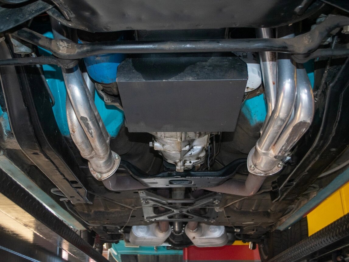 Power is sent to the rear wheels through a four-speed manual transmission and a 12-bolt rear axle.