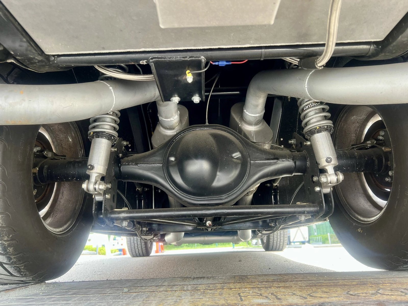 The rear of the vehicle has been tubbed to accommodate the larger rear tires, and other modifications include coilover suspension with a four-link rear end as well as a Wilwood master cylinder and four-wheel disc brakes.
