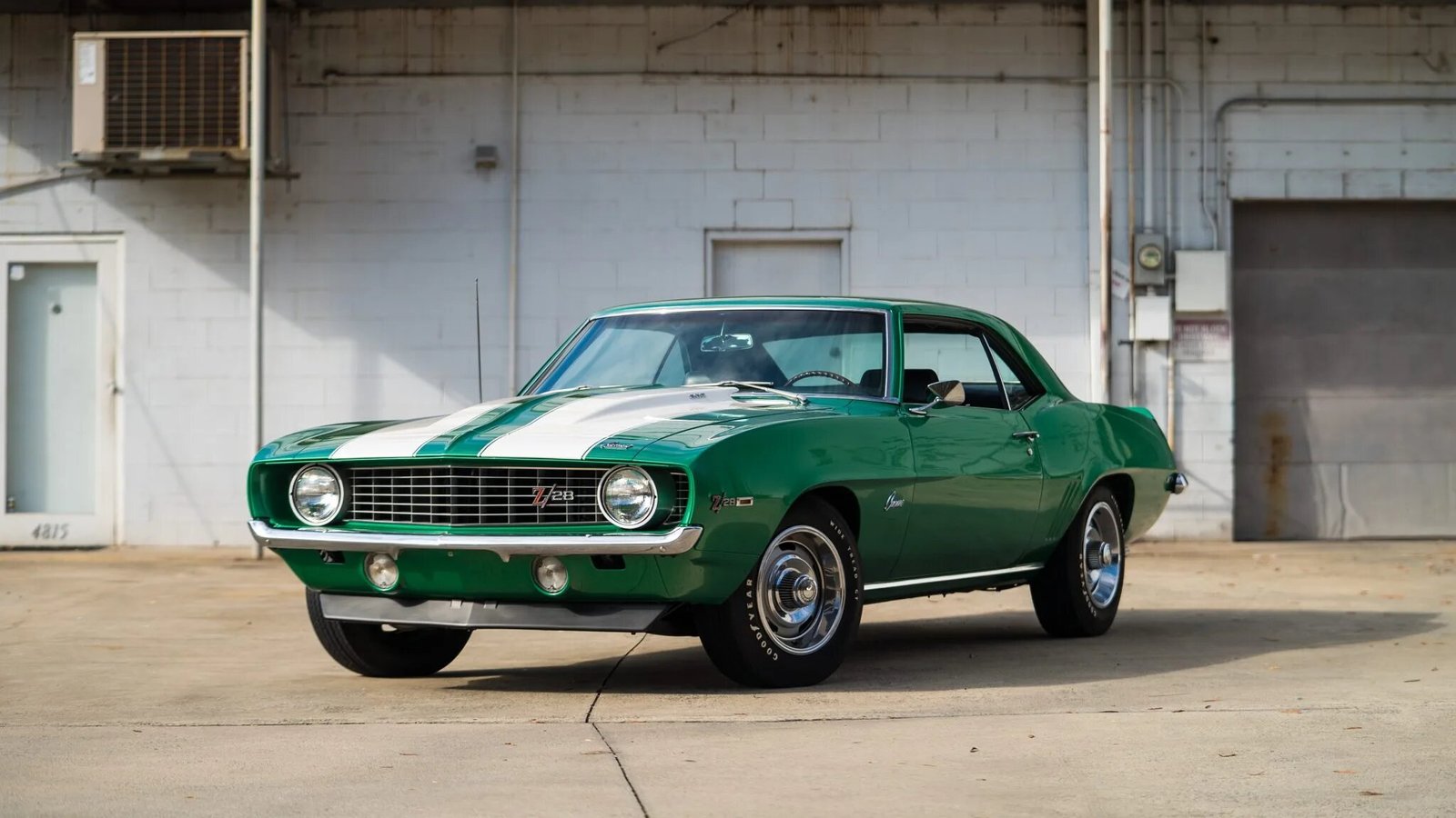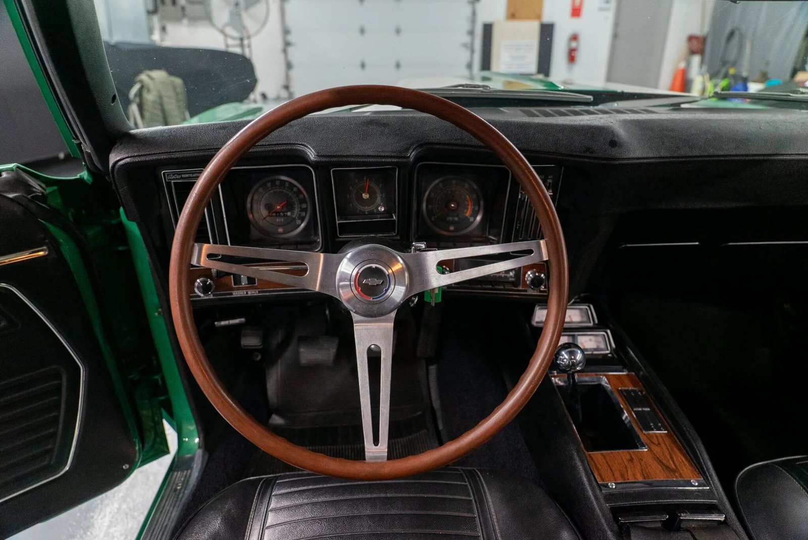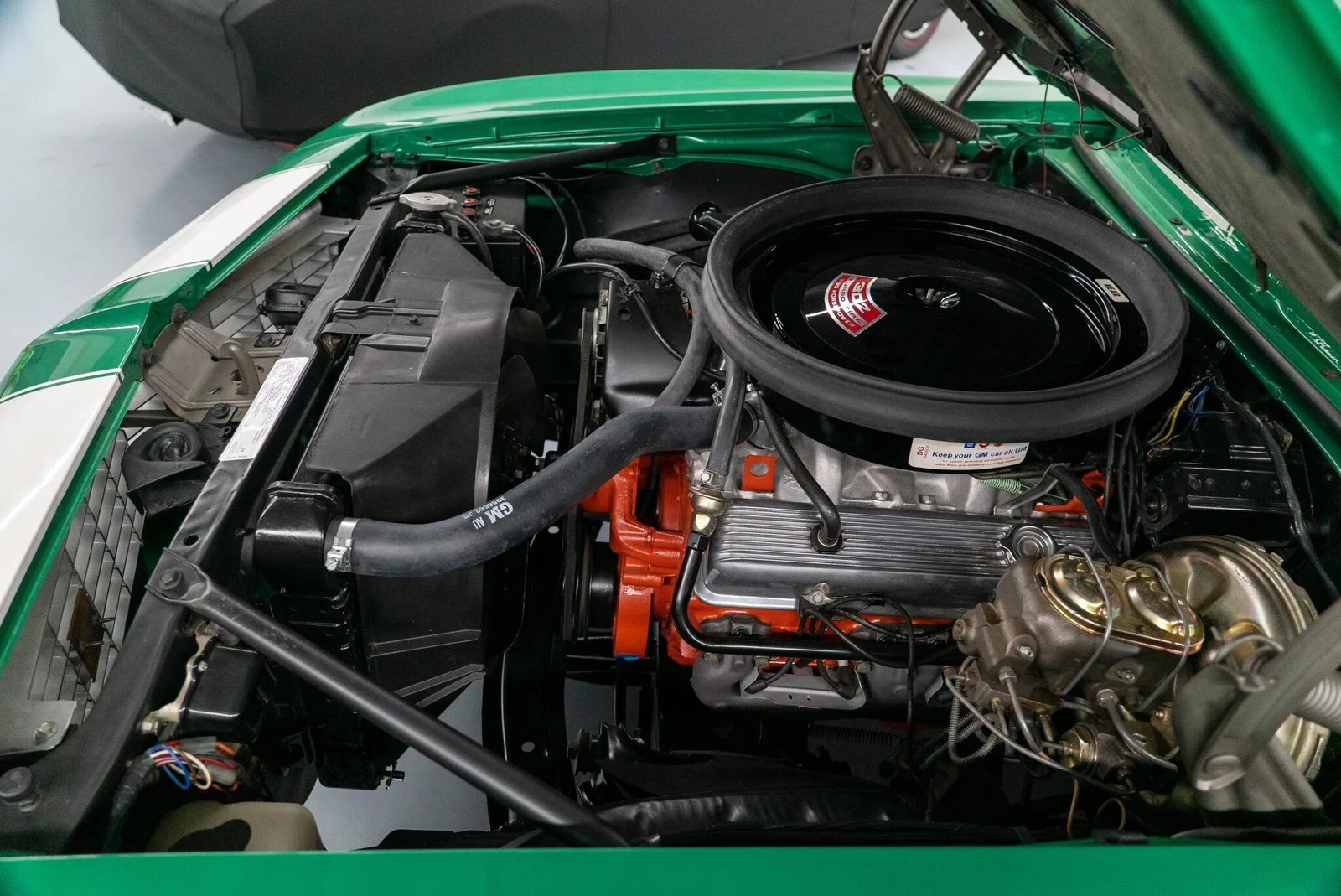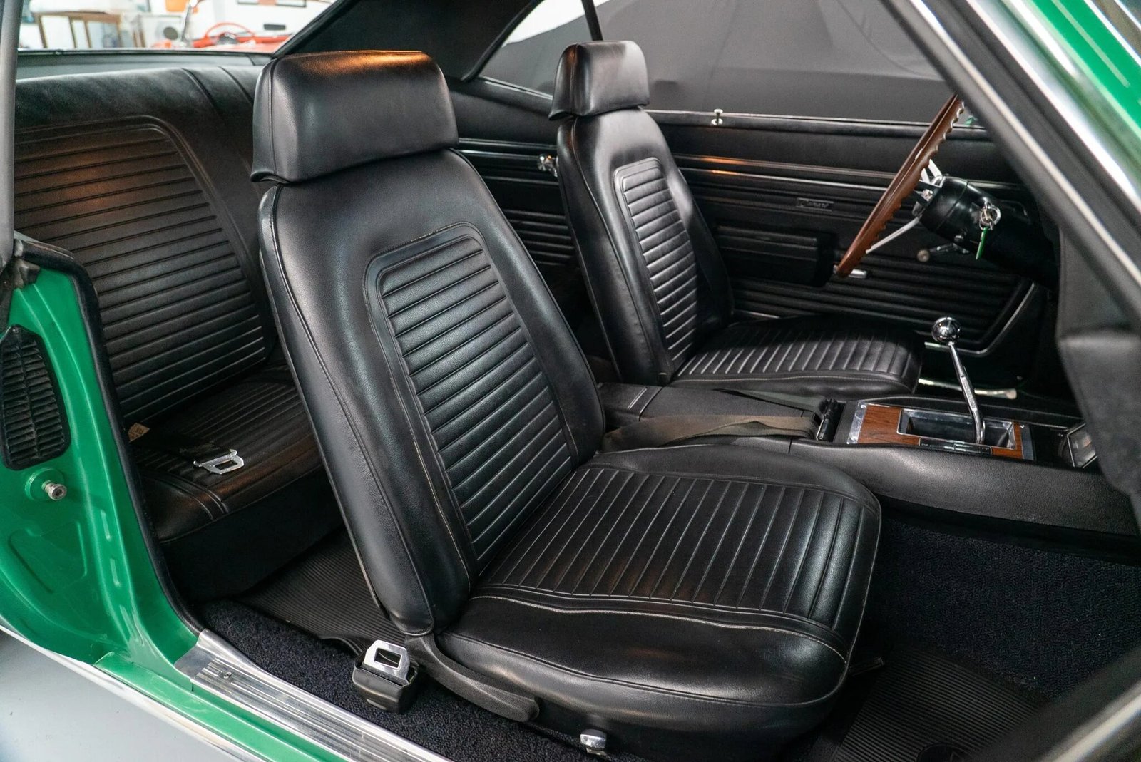 The car is finished in green with white stripes over black vinyl upholstery and is powered by a numbers-matching 302ci V8 linked with a numbers-matching Muncie four-speed manual transmission and a Positraction rear end.