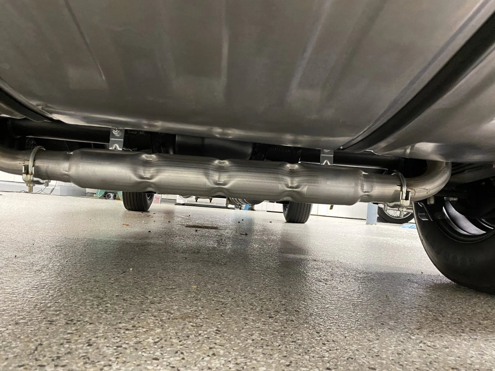 The 15″ Rally wheels wear chrome trim rings and center caps and are mounted with E70-15 Goodyear Wide Tread GT tires. Braking is handled by power-assisted front discs and rear drums.