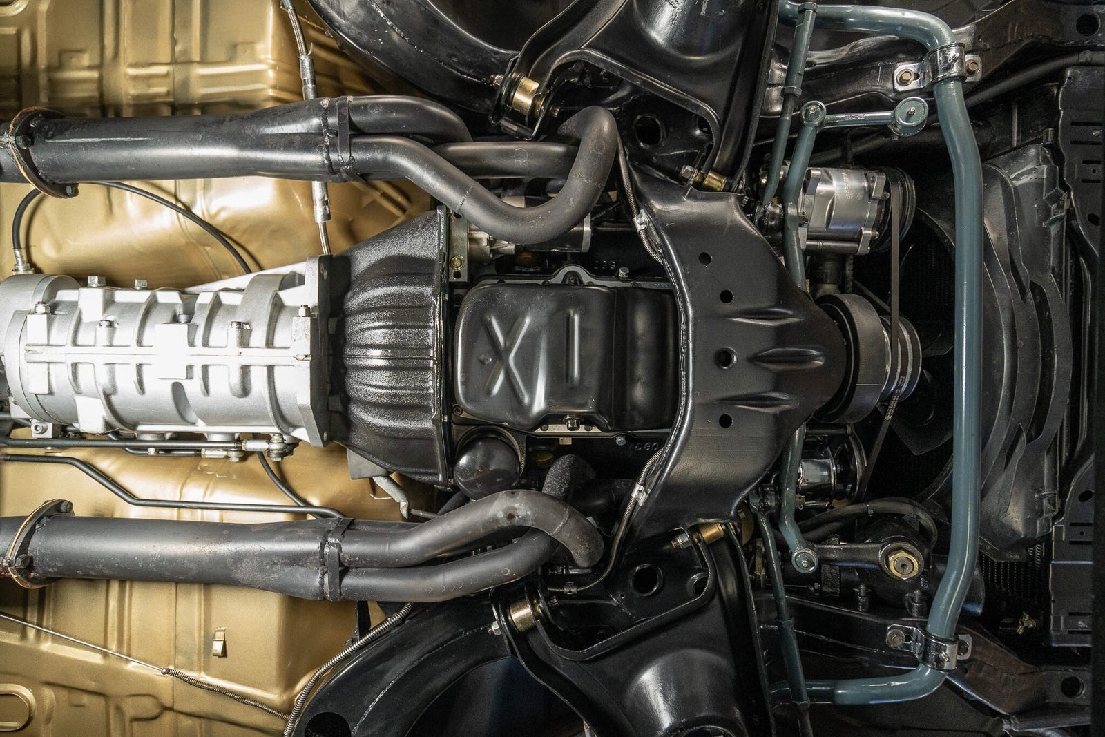 The car is equipped with unassisted steering as well as power-assisted four-wheel disc brakes with Baer front calipers and cross-drilled and slotted rotors.