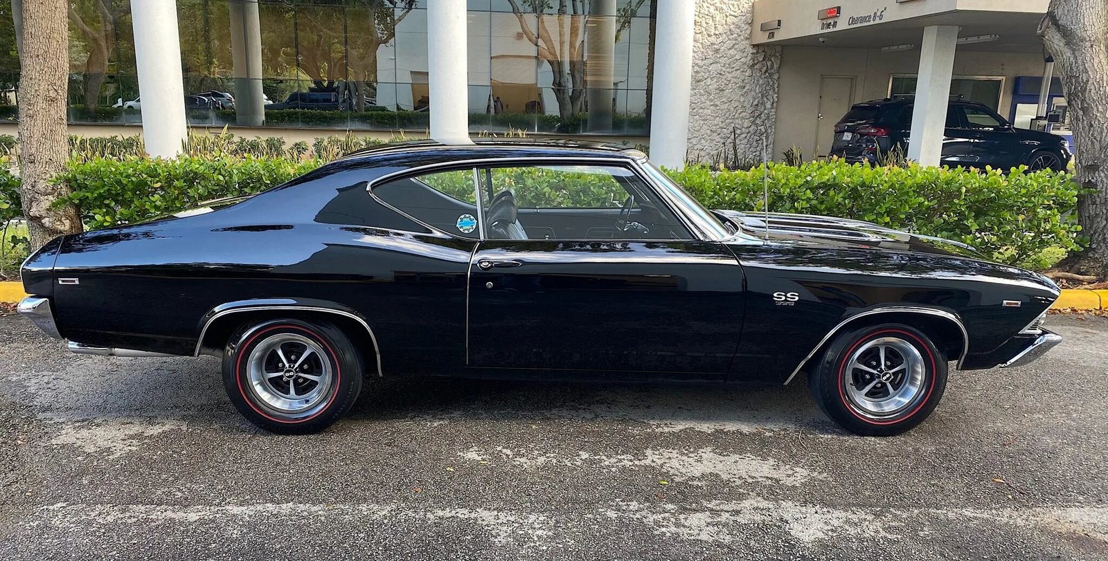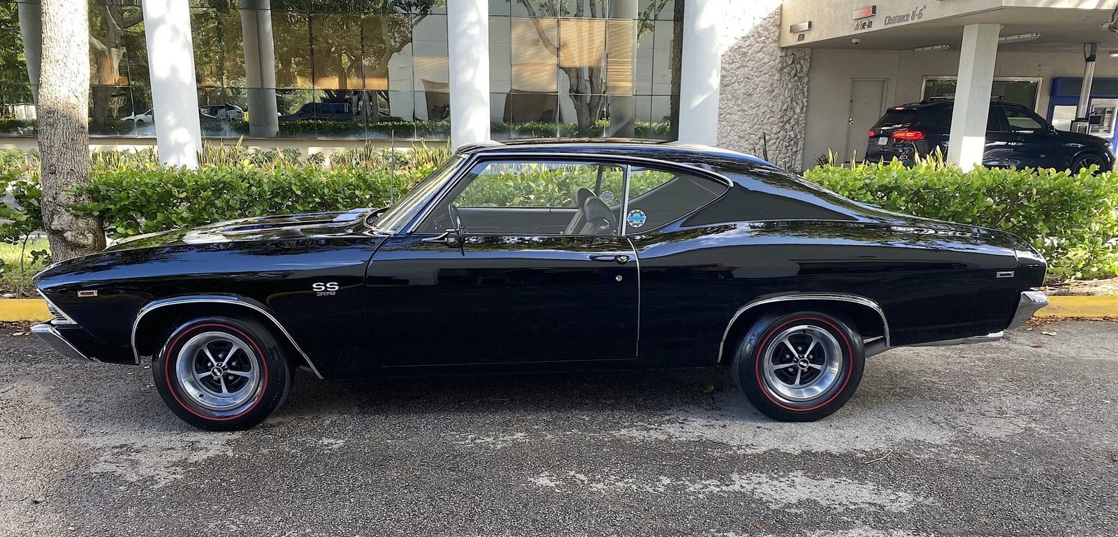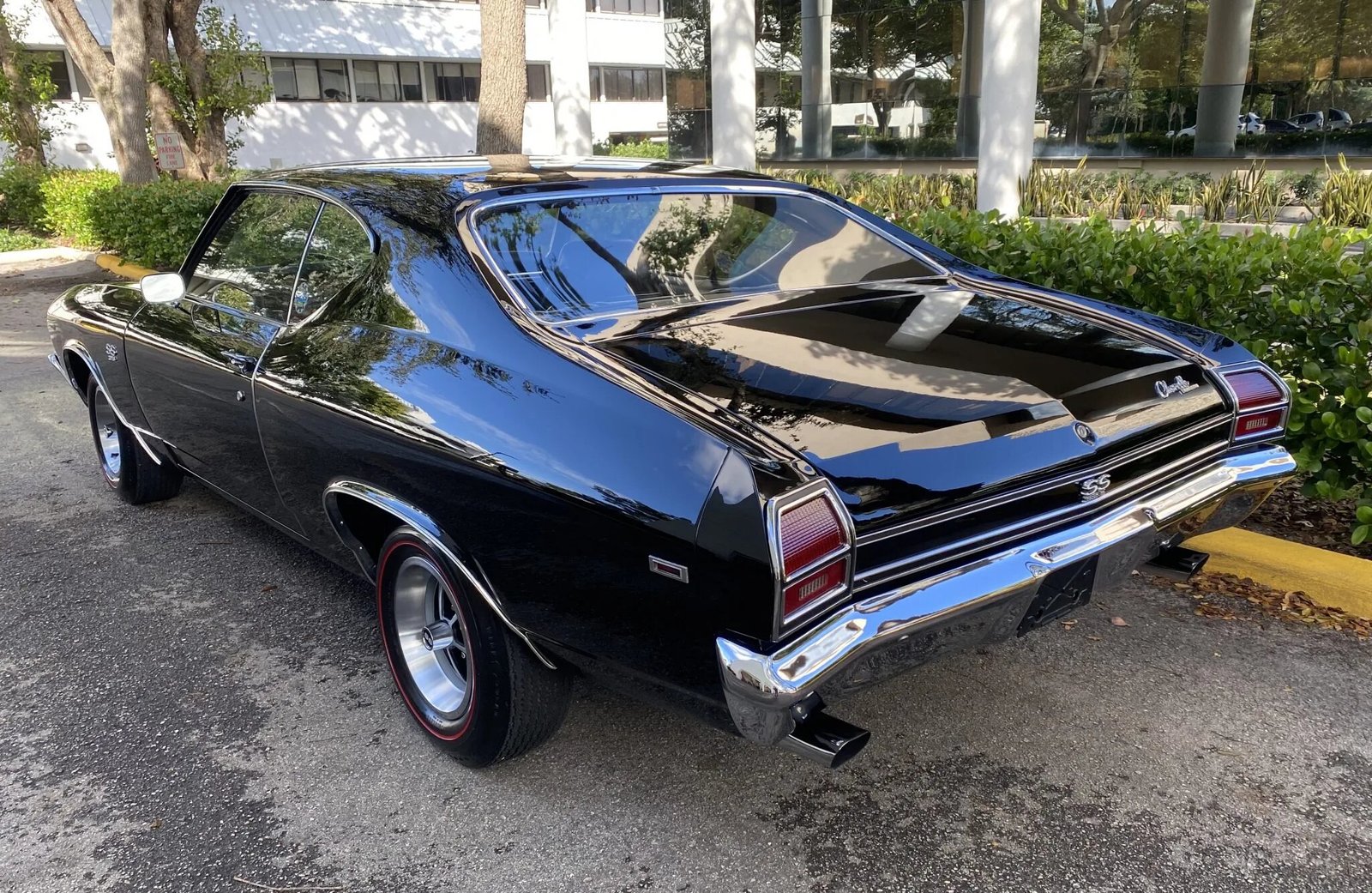 This 1969 Chevrolet Chevelle SS was produced at GM’s Atlanta, Georgia facility and is finished in black over black vinyl.