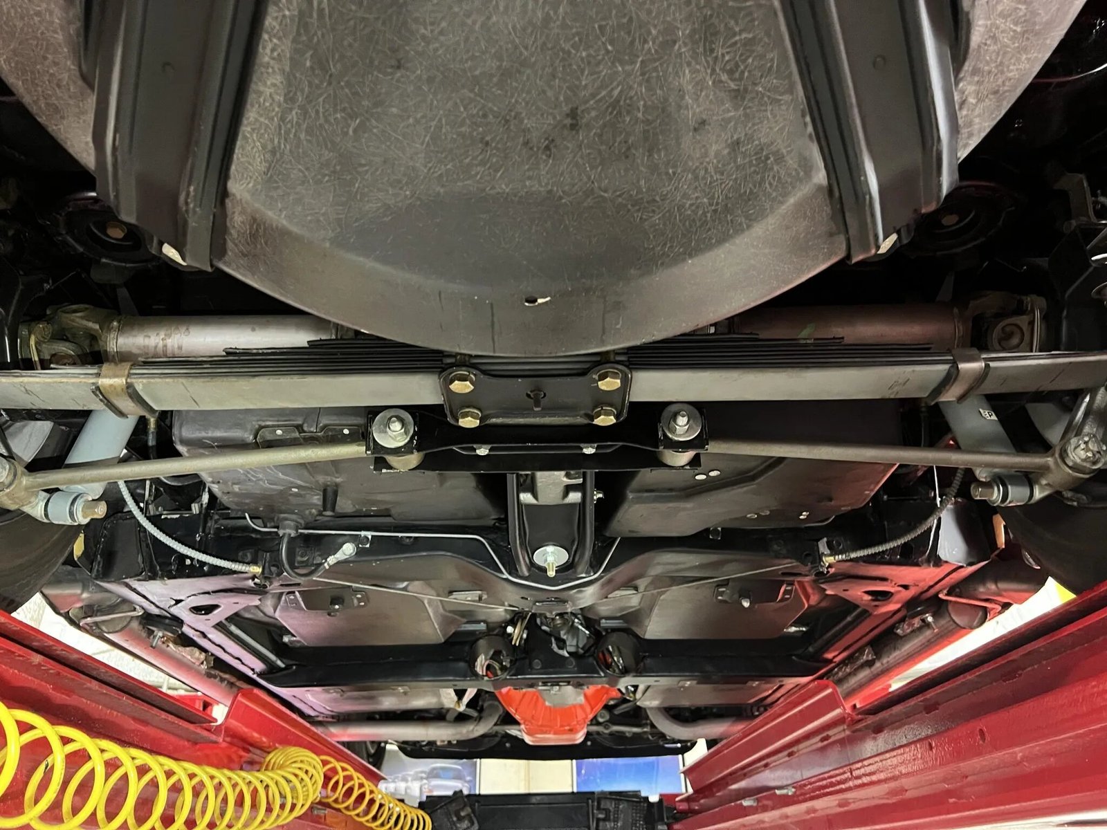 Power is sent to the rear wheels through a four-speed manual transmission and an optional Positraction limited-slip differential that were both overhauled in 2000. A frame crossmember and X-member were also replaced in 2000. Underside components had rust removed and were repainted in December 2017.