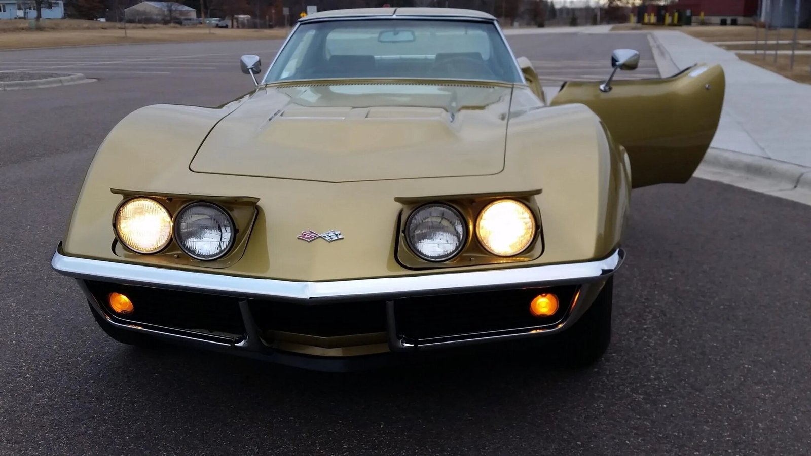 The car is finished in Riverside Gold over black vinyl upholstery and powered by a numbers-matching L36 427ci V8 paired with a four-speed manual transmission.