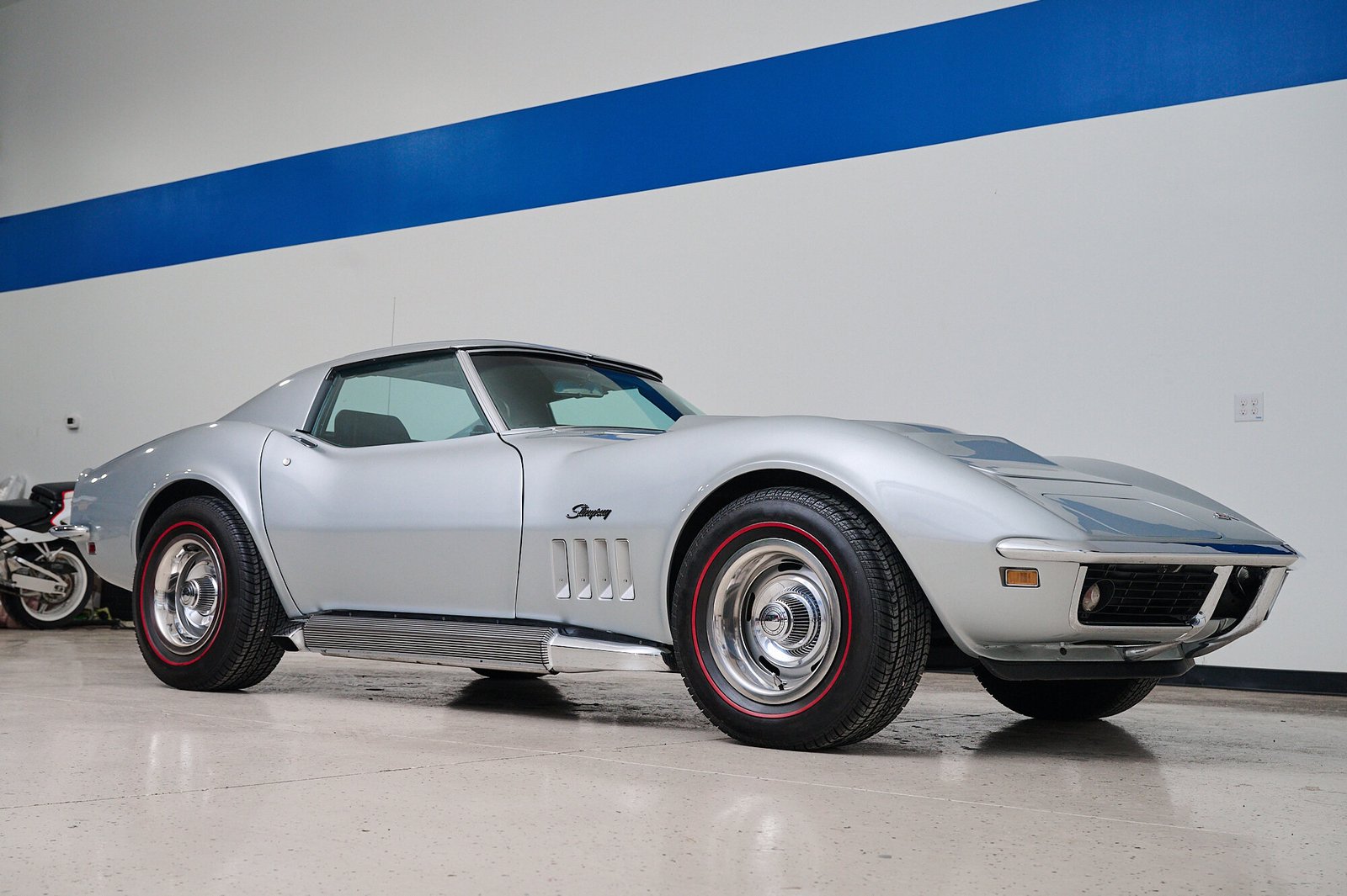 The car is finished in silver over black and powered by a numbers-matching 427ci L68 V8 equipped with three carburetors and paired with a four-speed manual transmission.