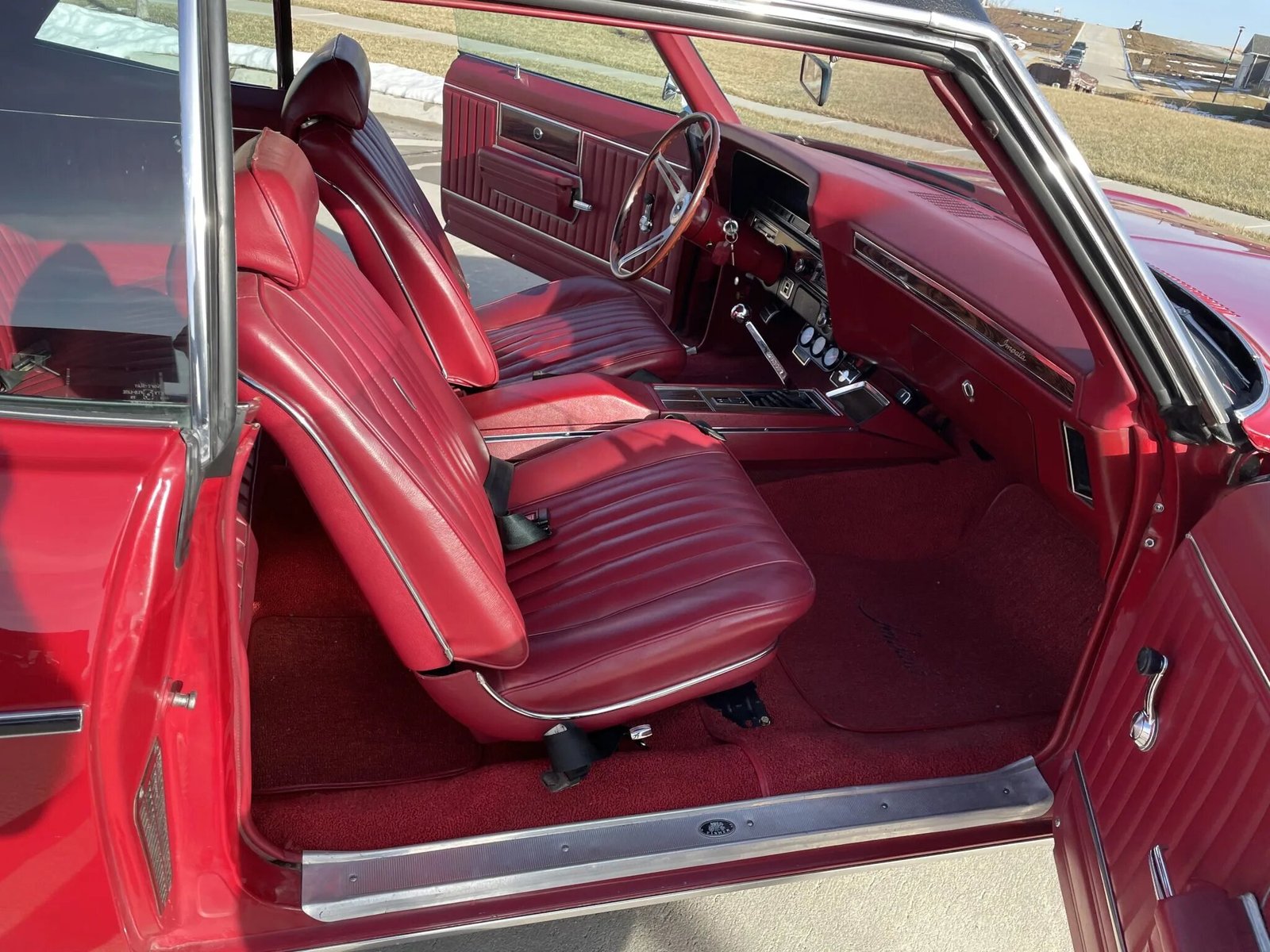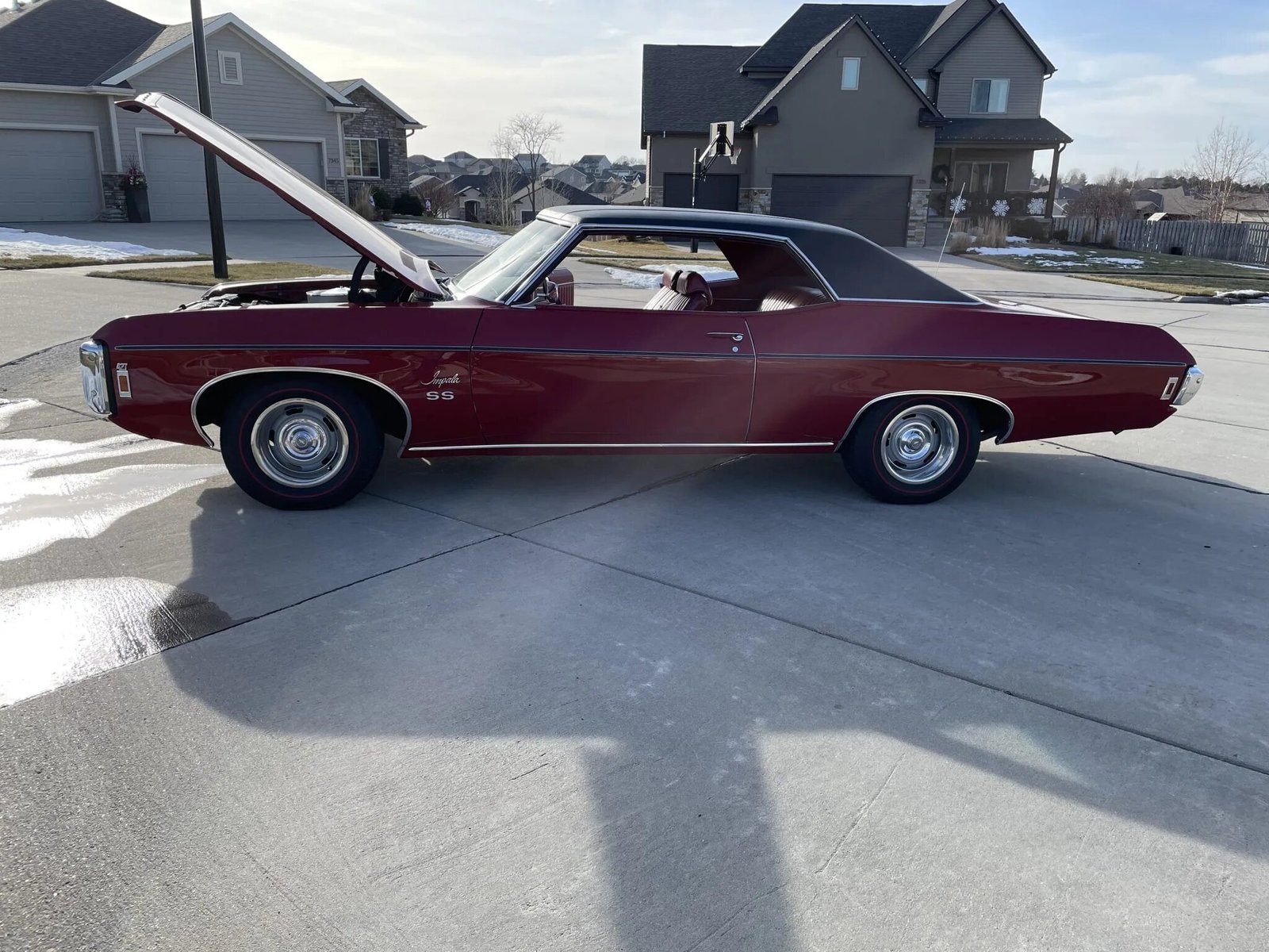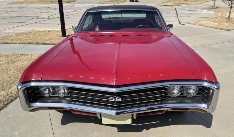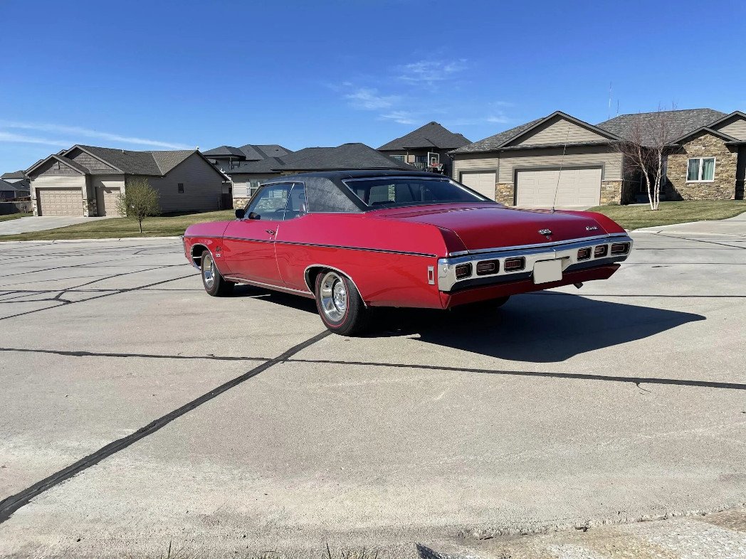 This 1969 Chevrolet Impala is finished in red over a matching interior and powered by a numbers-matching 427ci V8 paired with a four-speed manual transmission and a 12-bolt rear axle.