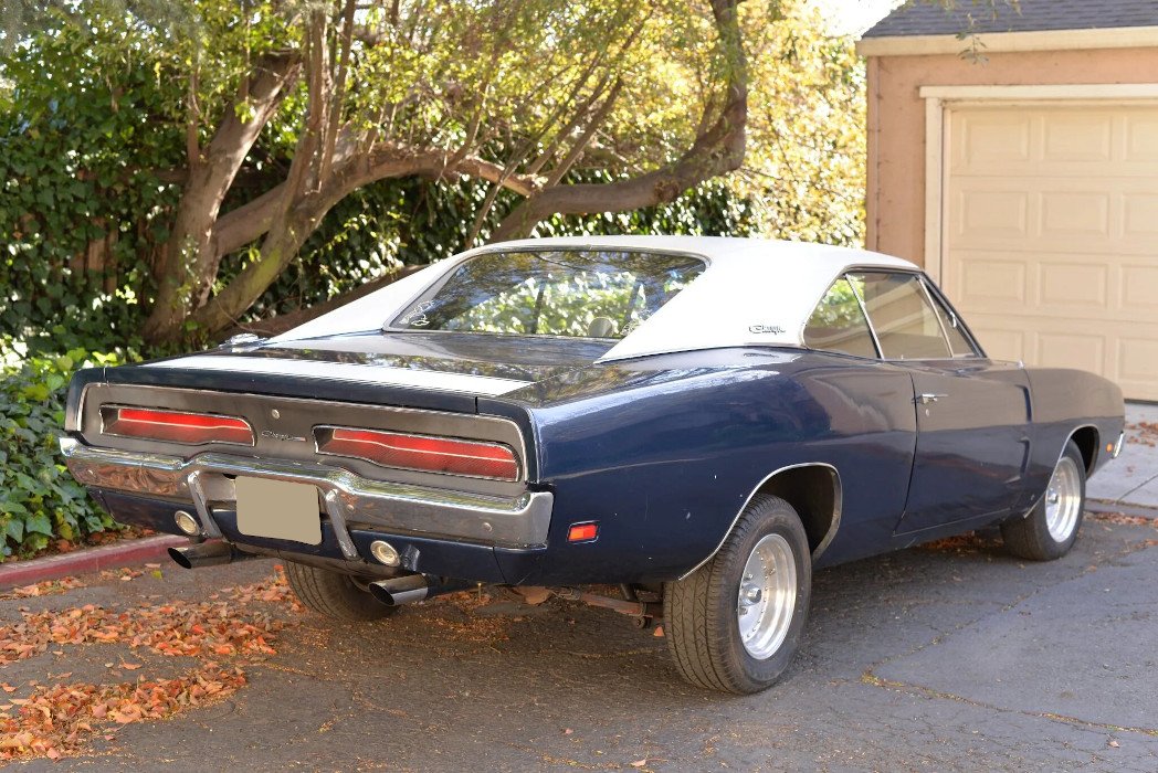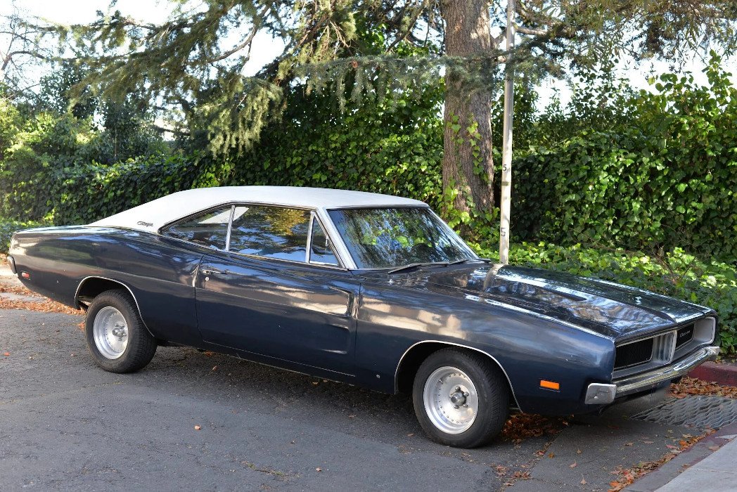 This 1969 Dodge Charger is finished in blue over blue vinyl and powered by a replacement 440ci V8 paired with a TorqueFlite three-speed automatic transmission.