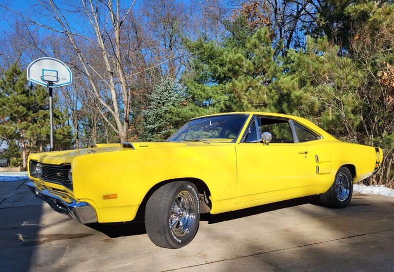 Subsequent work from 2000 to 2005 consisted of stripping the body and replacing the fenders, quarter panels, and floors as well as repainting the car, reupholstering the interior, rebuilding and installing a replacement 383ci V8, and fitting Wilwood front disc brakes.