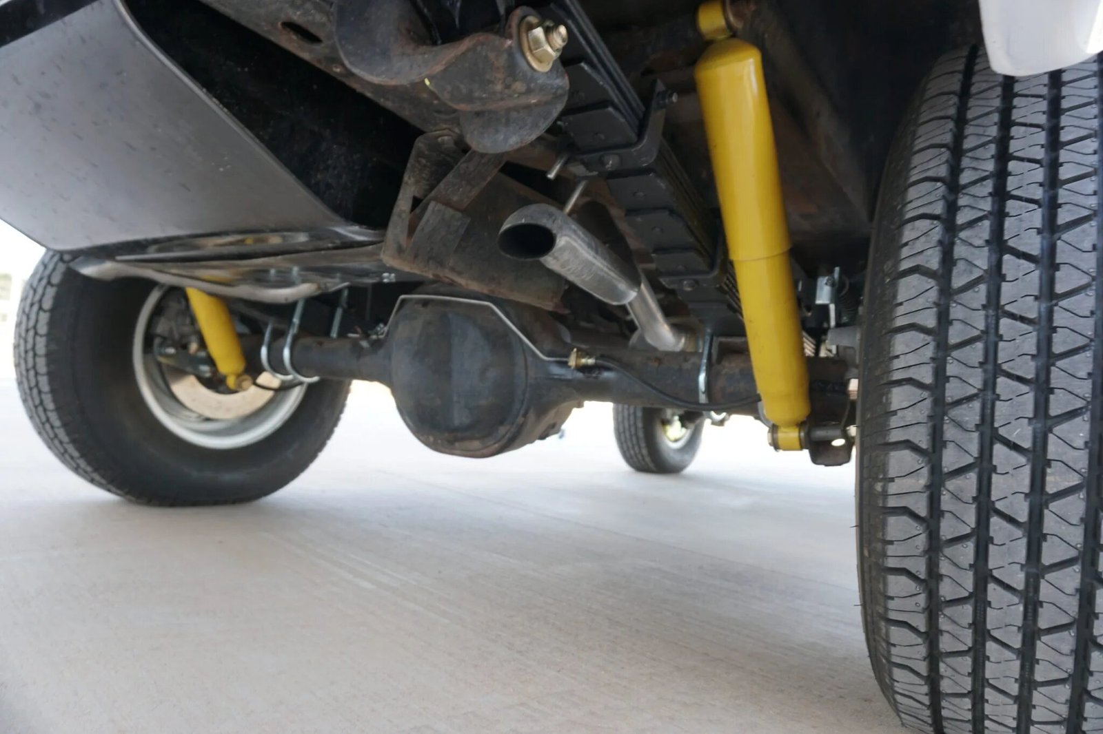 Power steering and four-wheel disc brakes have been fitted, and the truck is equipped with manually locking front hubs.