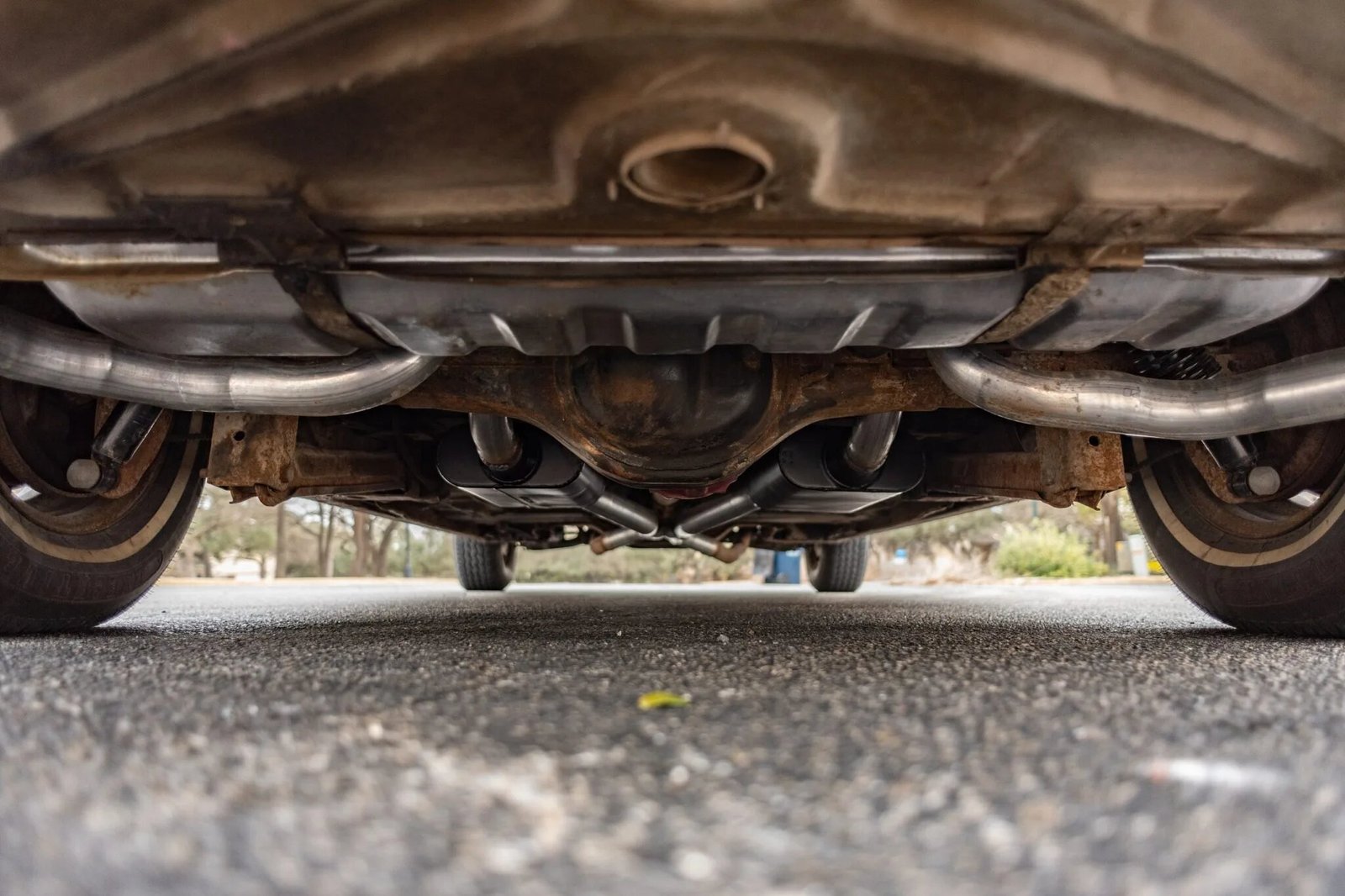 Steel 15″ wheels wear chrome hubcaps and 215/75 radial tires.