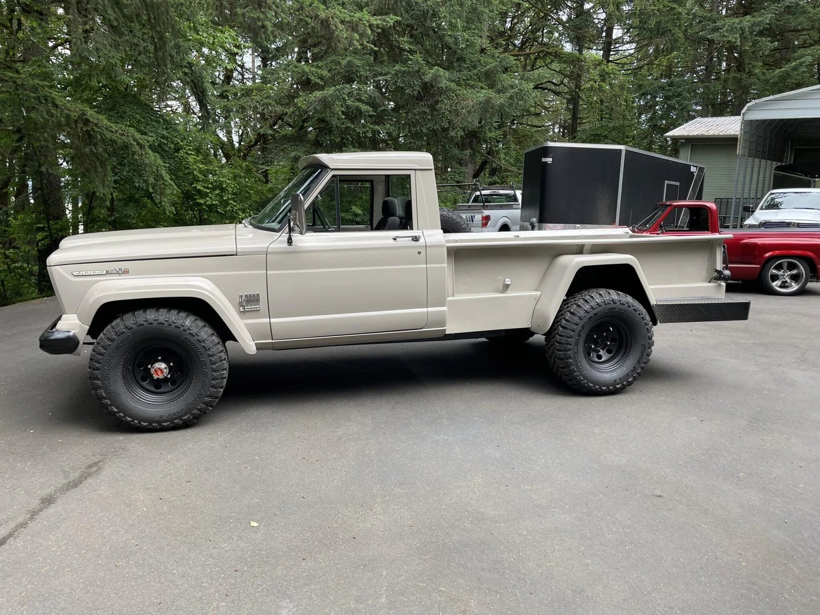 Equipment includes dual outside mirrors, a fabricated diamond-plate rear bumper, a bright grille and trim, and” J3000″ and “4 Wheel Drive” badging.