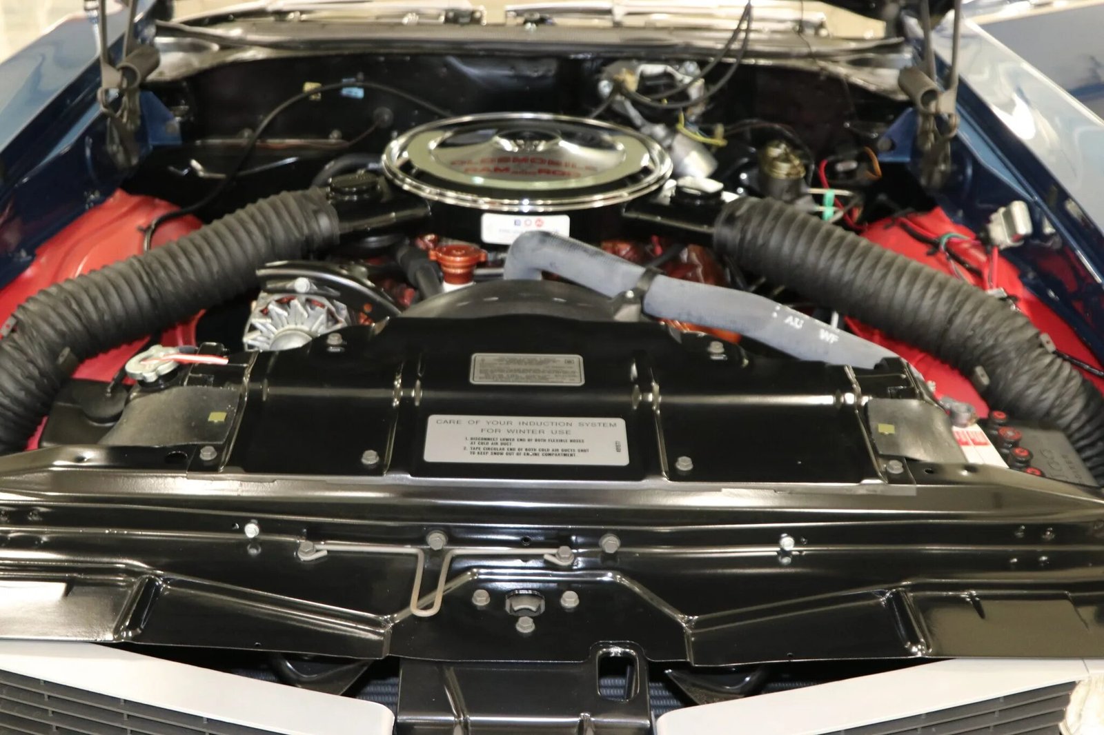 The 400ci V8 breathes through a four-barrel carburetor and features a dual snorkel intake system with fresh air ducts and scoops that are mounted below the front bumper.