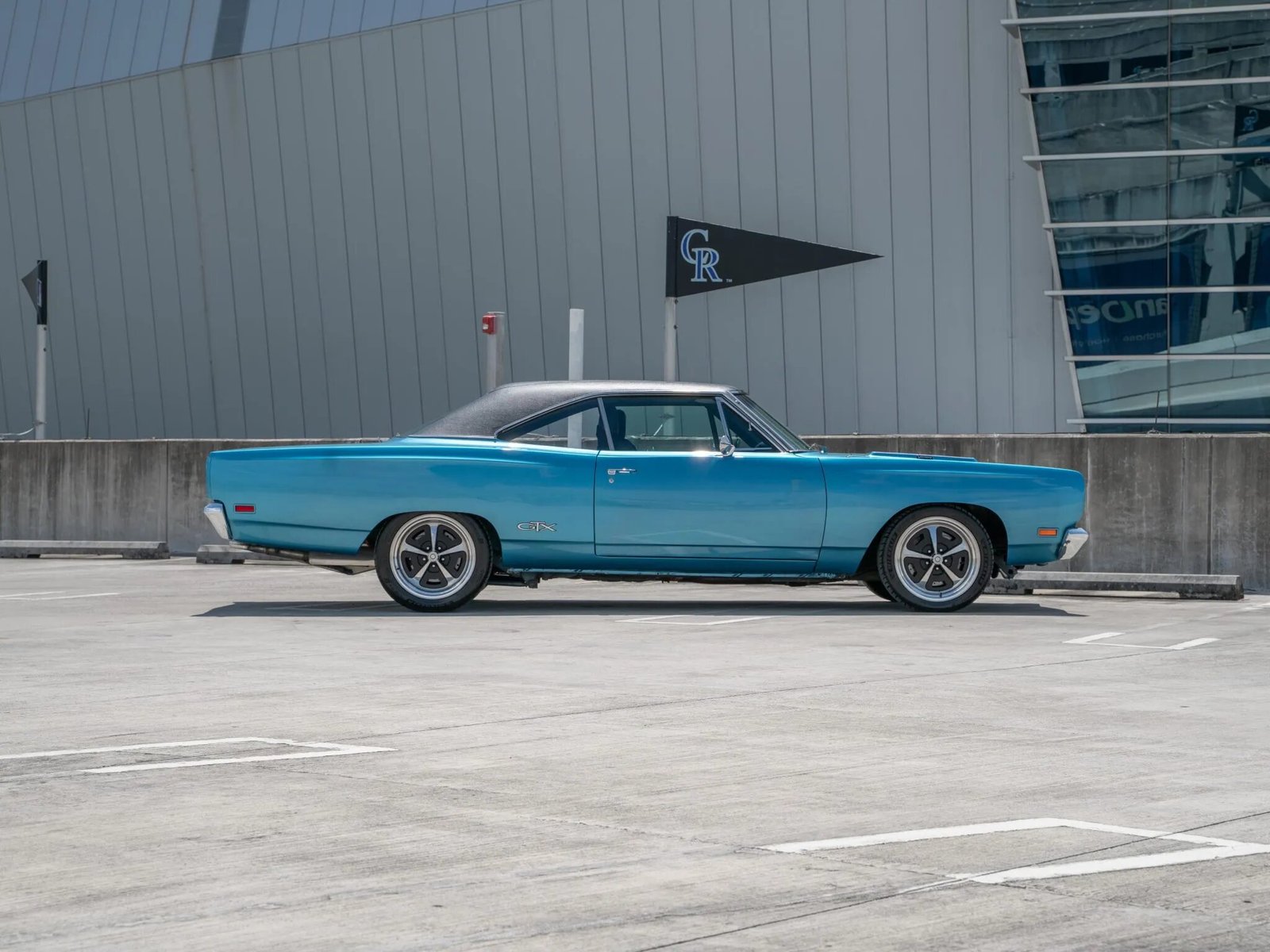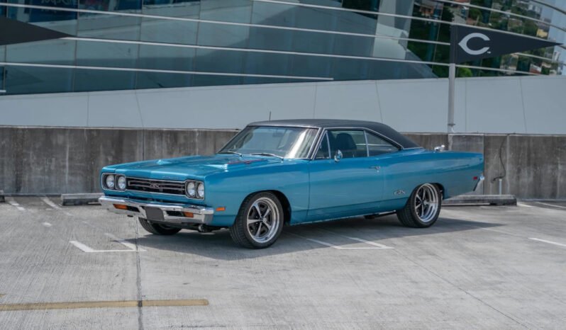 This 1969 Plymouth GTX hardtop underwent a custom build in 2010 by Trans Am Specialties, and it is powered by an SRT-10 Viper-sourced 8.3-liter V10 that is fitted with a Paxton Novi supercharger and mated to a six-speed manual transmission. Finished in blue with a black vinyl roof, the car is also equipped with black Viper-sourced seats, Stewart-Warner gauges, a Pioneer Bluetooth head unit, air conditioning, Wilwood cross-drilled disc brakes, coilover suspension, and MagnaFlow mufflers.