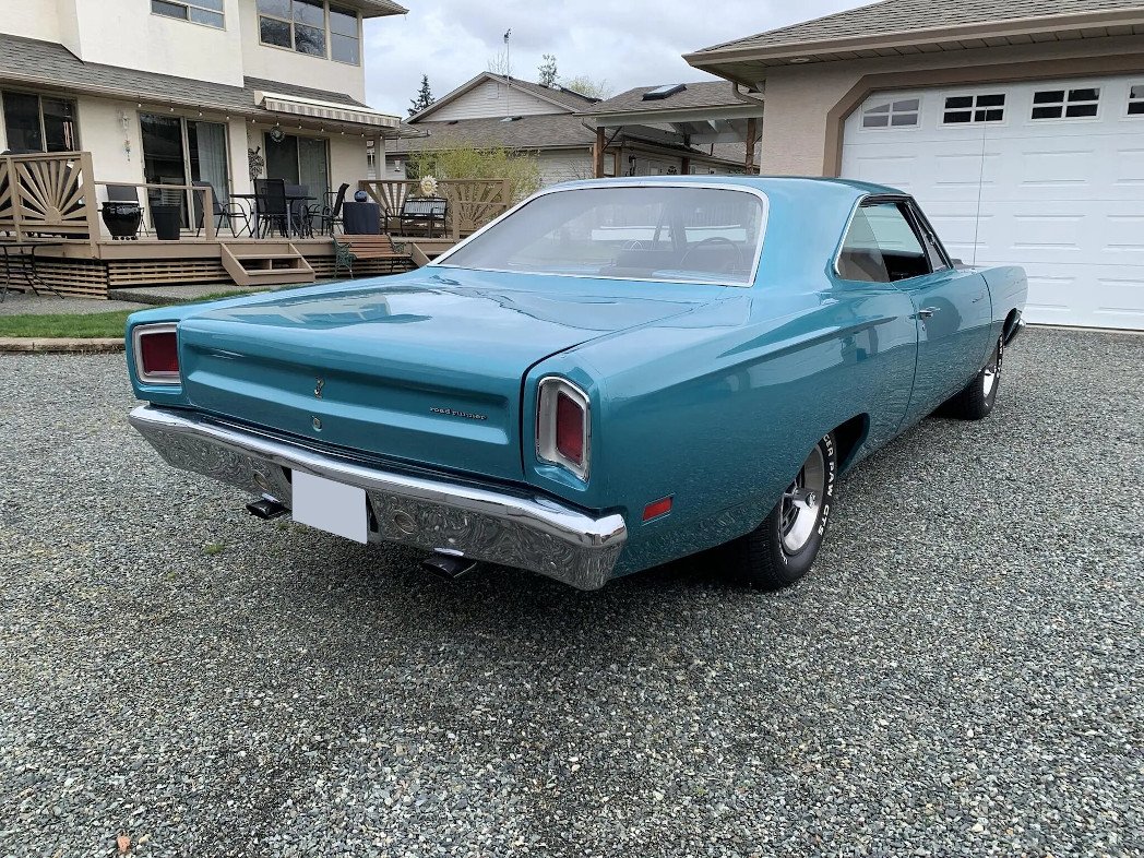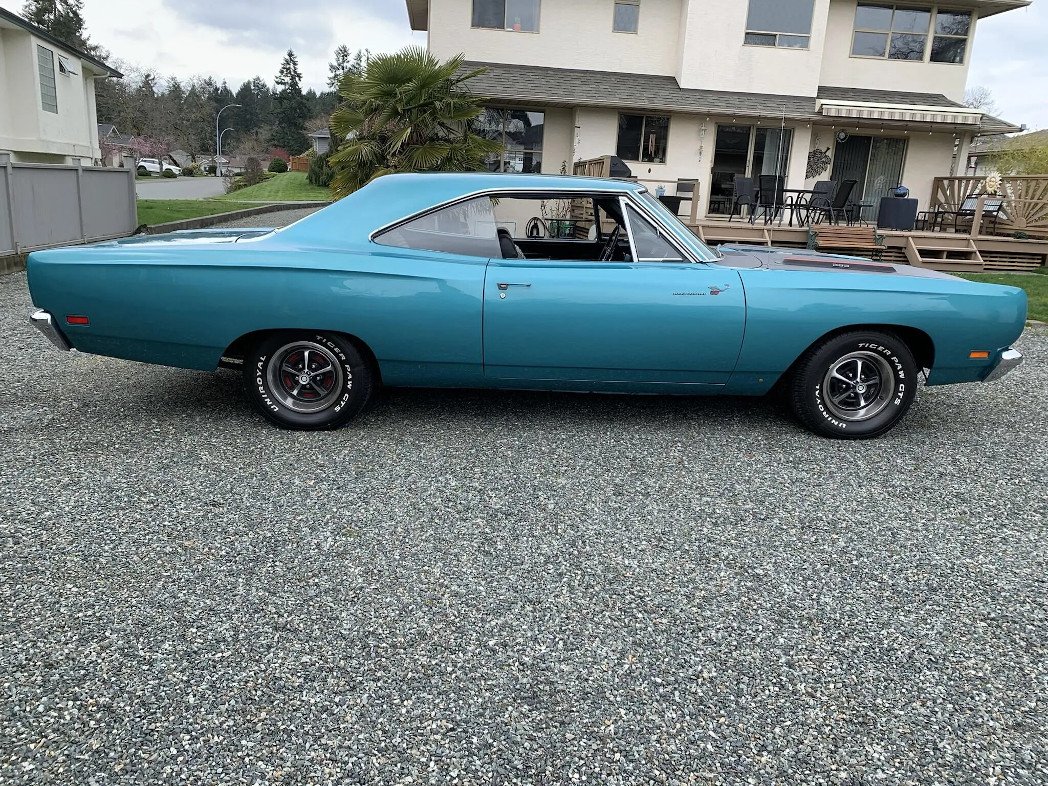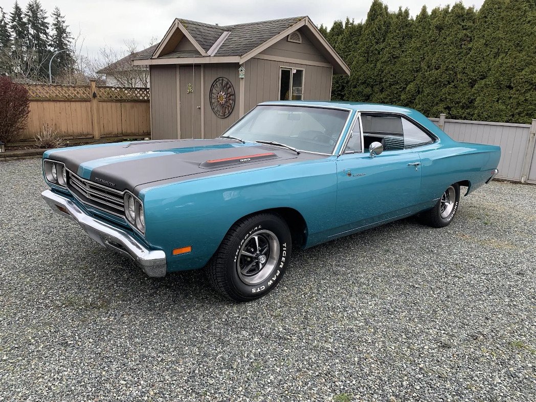 This 1969 Plymouth Road Runner coupe was produced at Chrysler’s Los Angeles, California, facility and is powered by a 383ci V8 topped with three two-barrel carburetors and linked to a four-speed manual transmission.