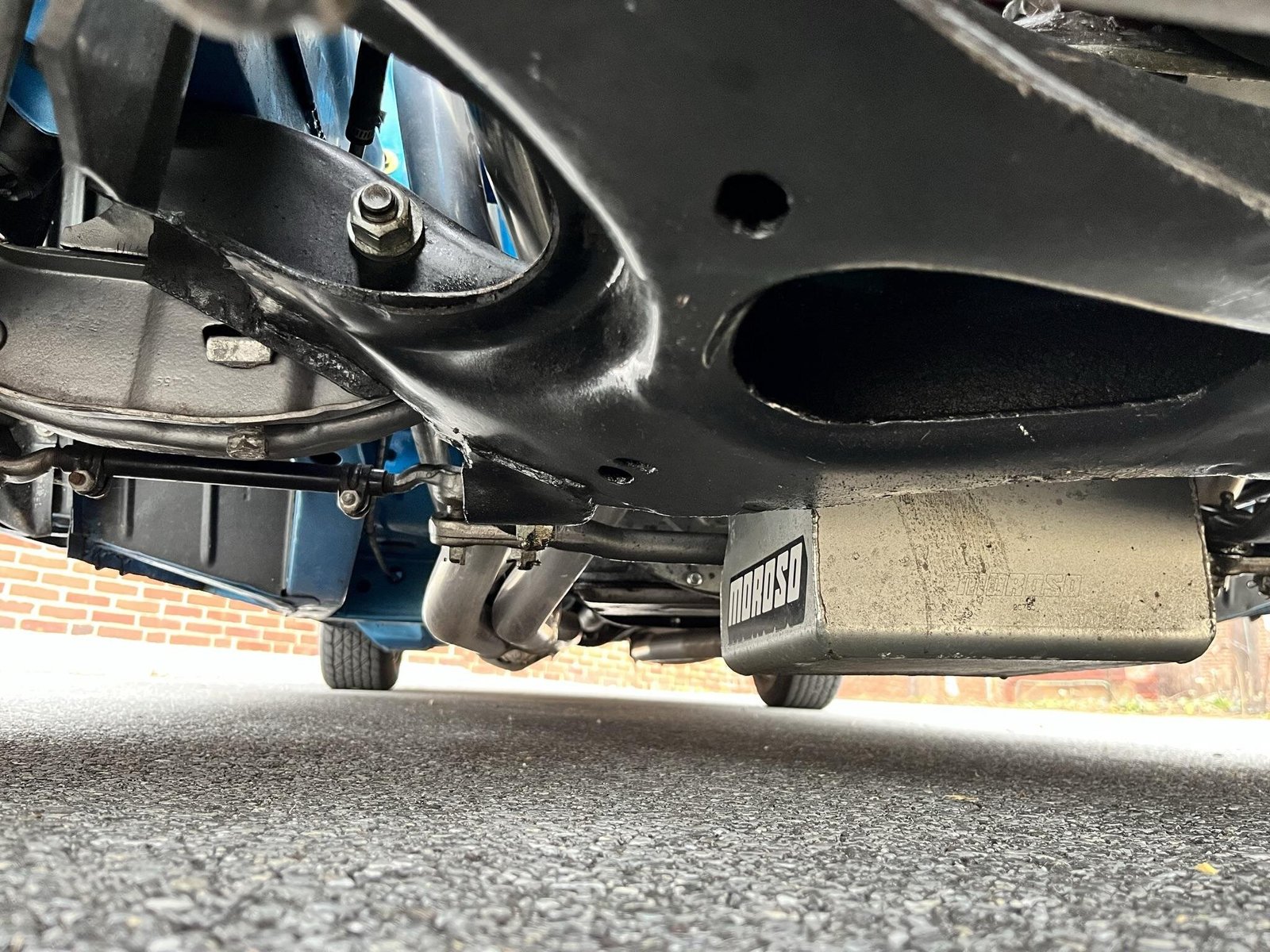 The car is equipped with power steering, and braking is handled by power-assisted aftermarket front discs and factory-style rear drums.