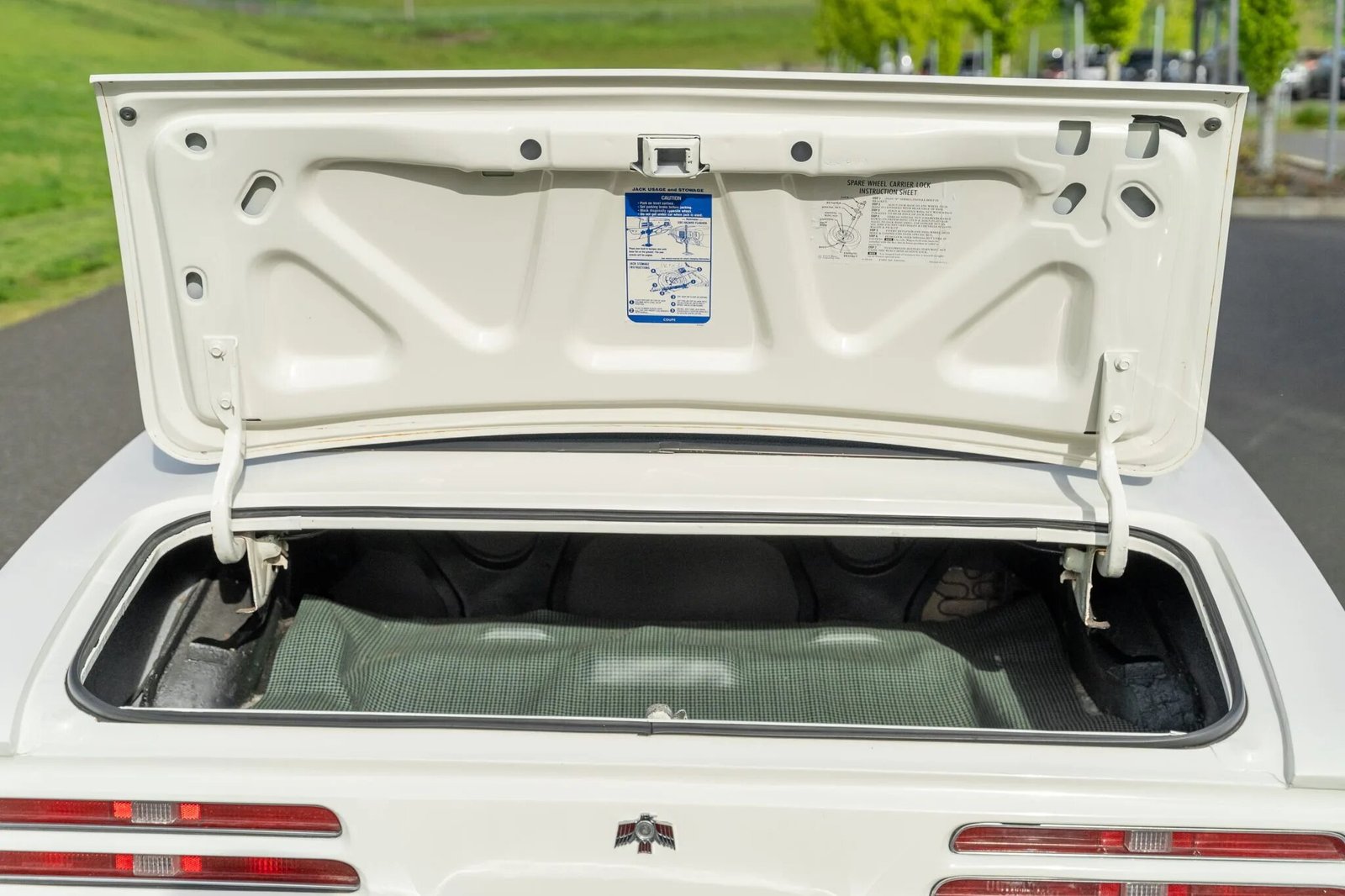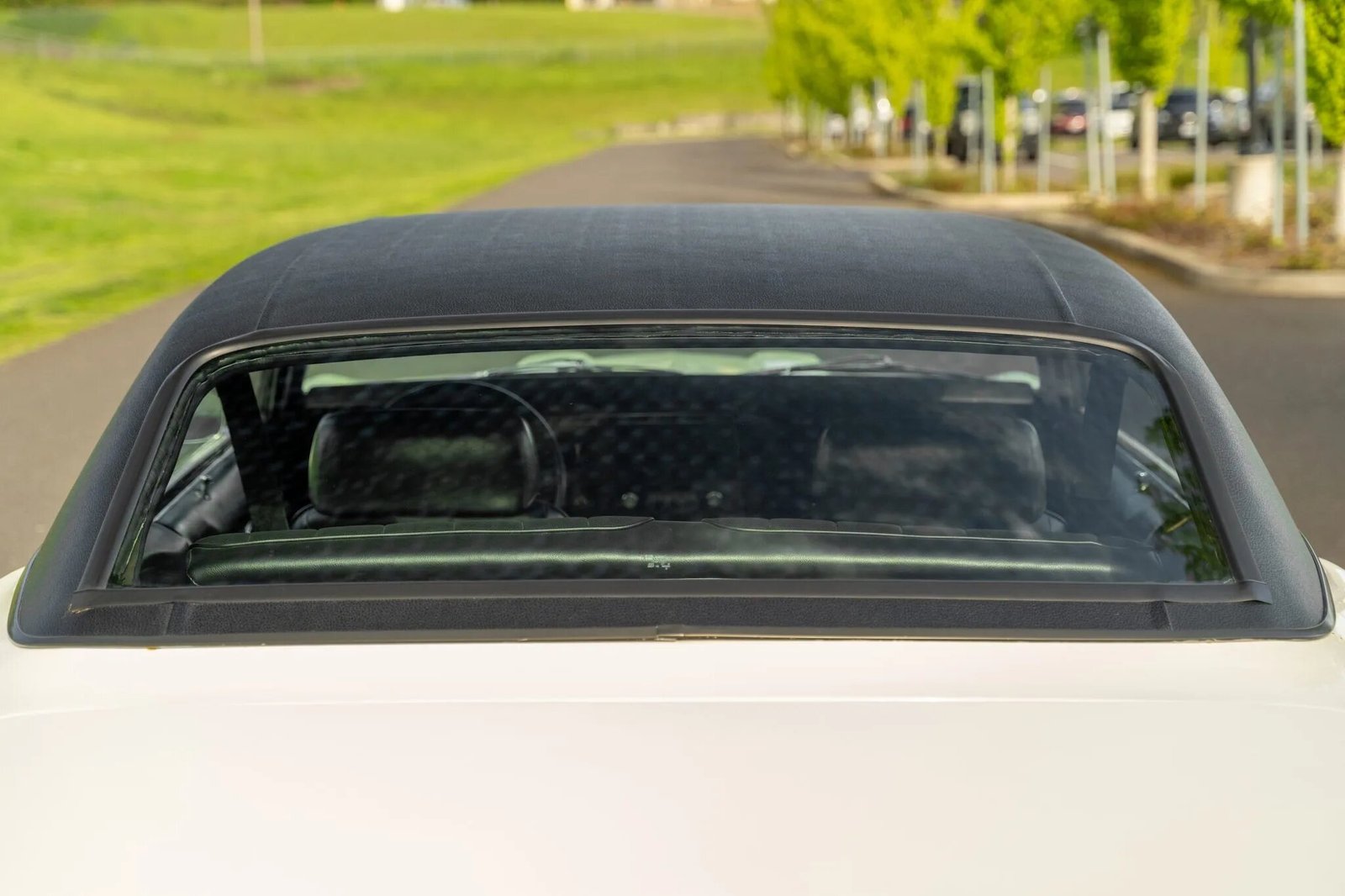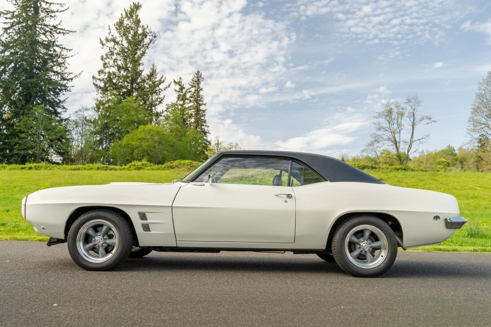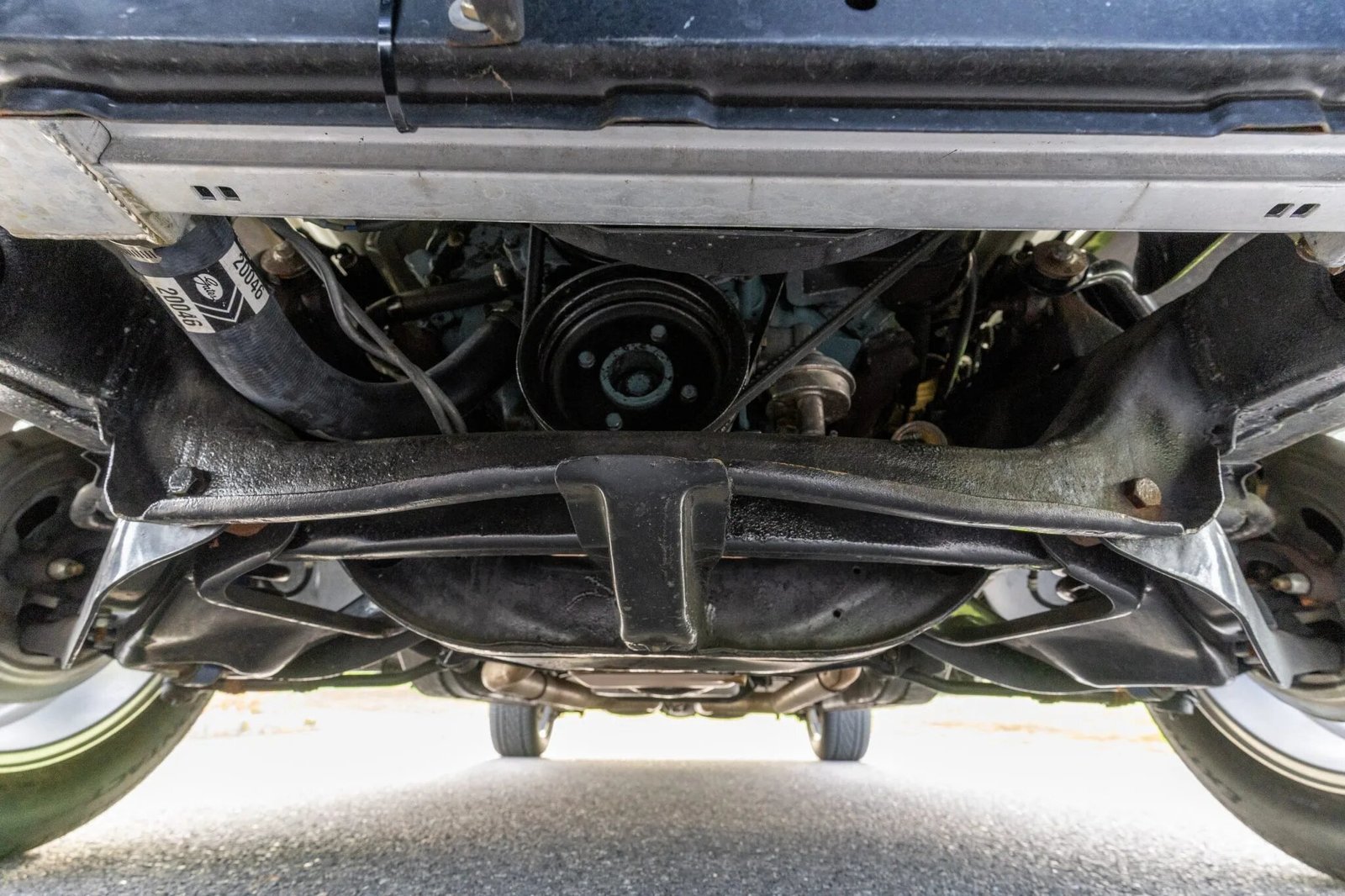 Equipment includes three-point front seatbelts, a tilt-column steering wheel, rear Retro Belt harnesses, and polished sill plates.