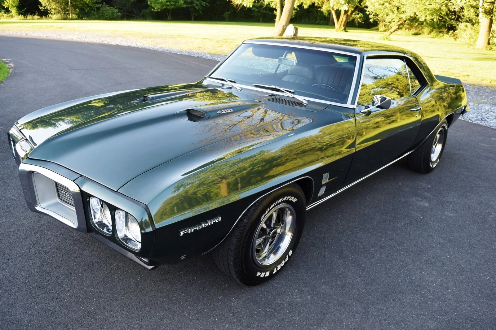 This 1969 Pontiac Firebird is powered by the original 400ci Pontiac V8 and 4-speed manual transmission, and is equipped with factory A/C.