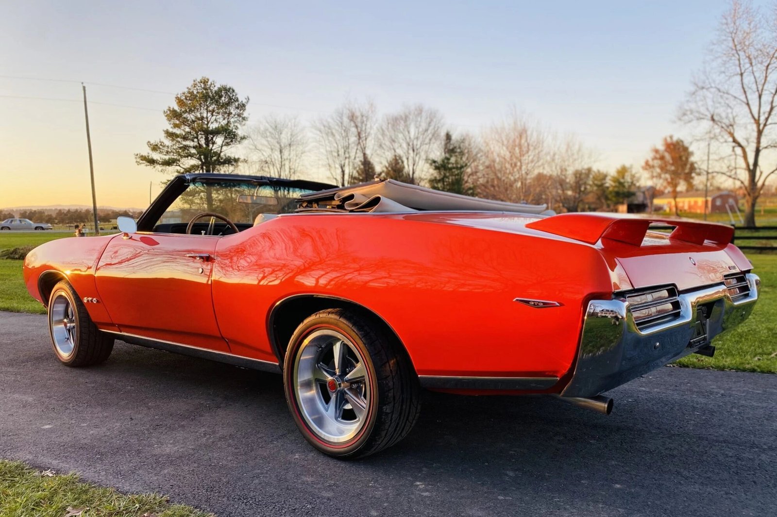 The car was originally finished in Limelight Green Poly (59) with a white (1) convertible top, and it was repainted in a Carousel Red finish performed with Axalta products and accented with a replacement top.