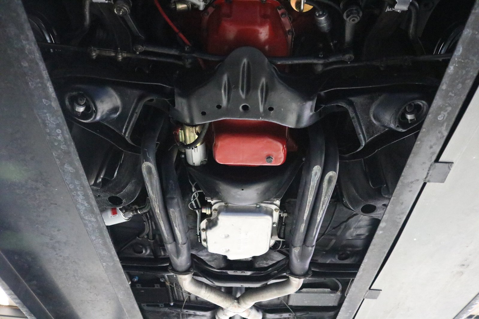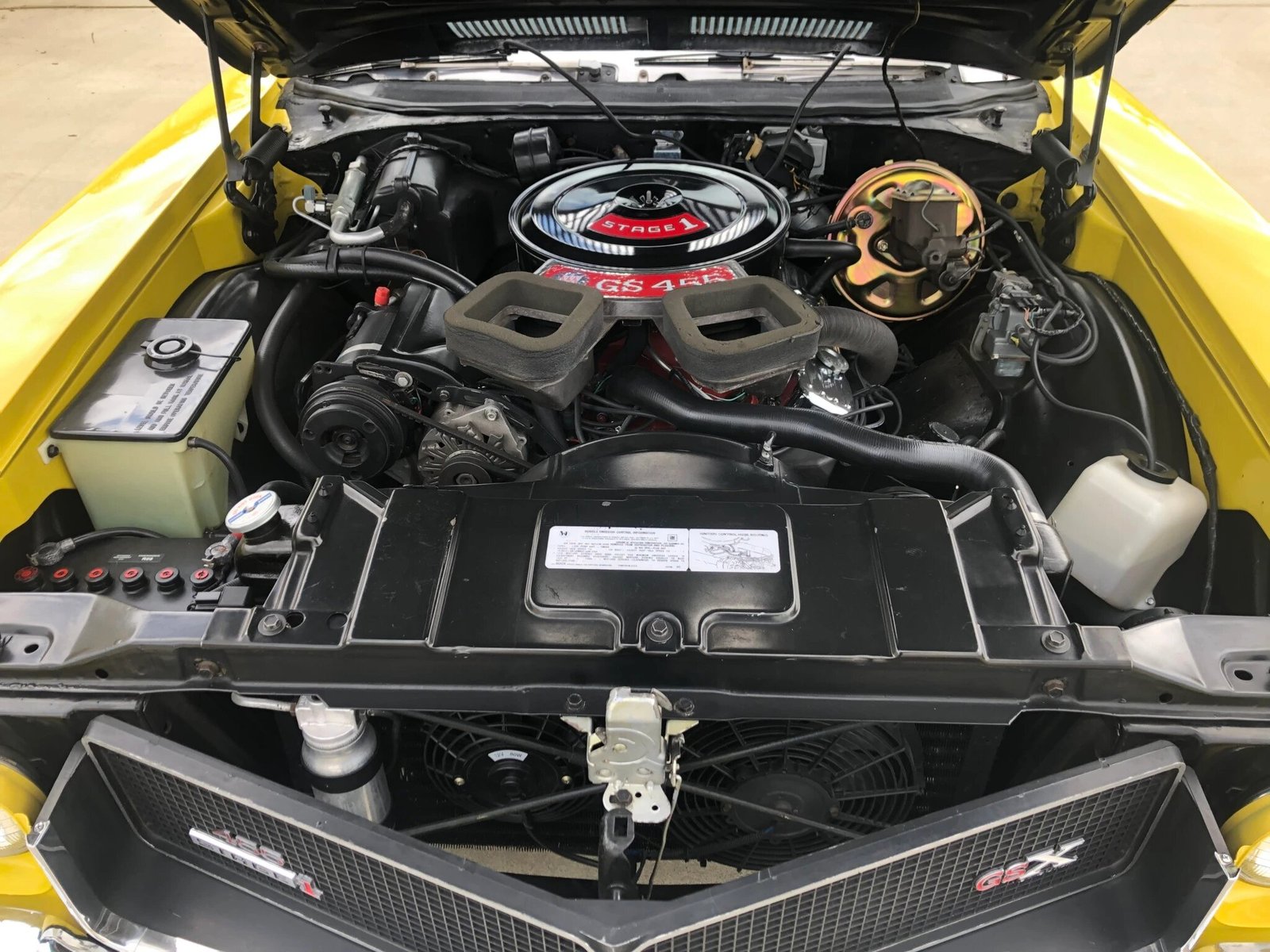 The 455ci V8 has been modified with TA Performance Products aluminum Stage 1 cylinder heads, an aluminum Edelbrock intake manifold, and Poston headers which feed into a dual exhaust system with a crossover pipe.
