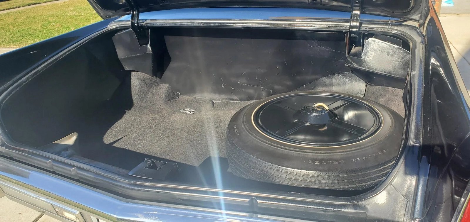 Steel 15″ wheels are accented with polished covers and wear older thin-whitewall tires.
