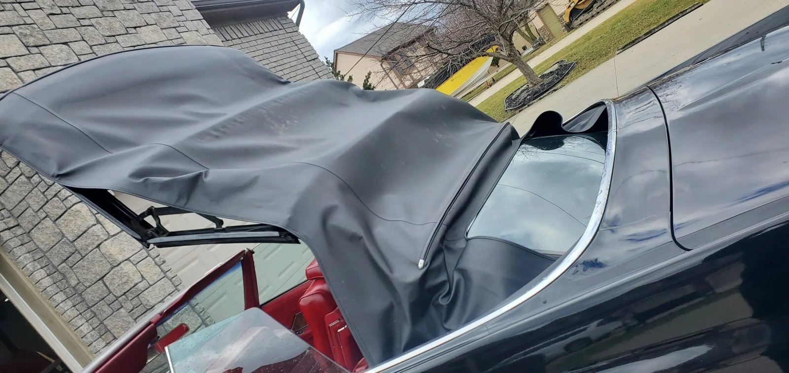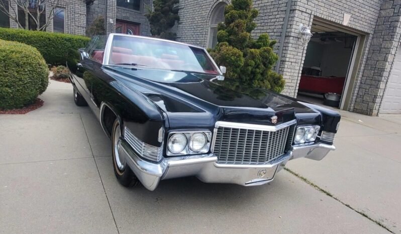 This 1970 Cadillac DeVille convertible is finished in black over red leather and powered by a 472ci V8 paired with a three-speed automatic transmission.