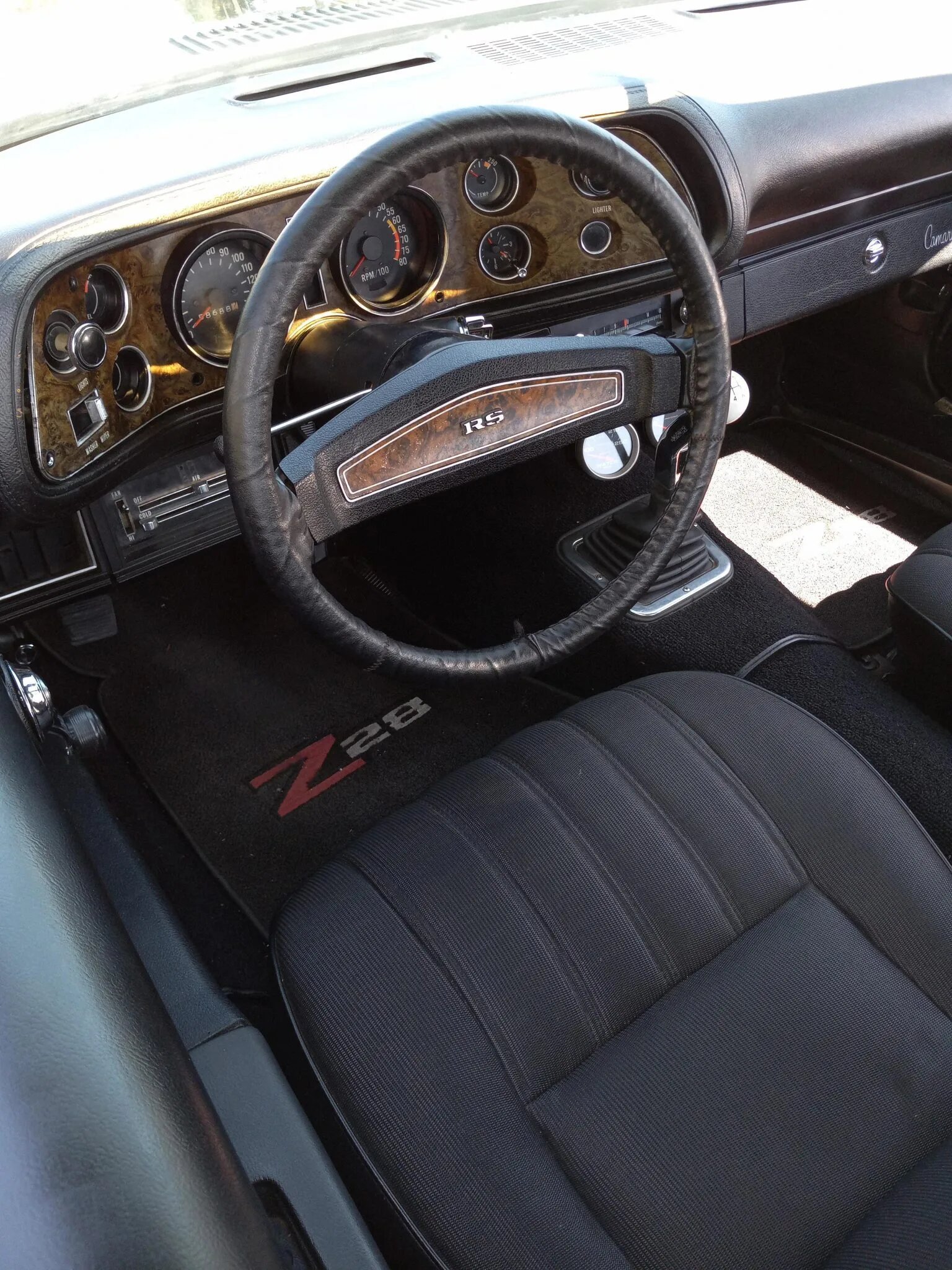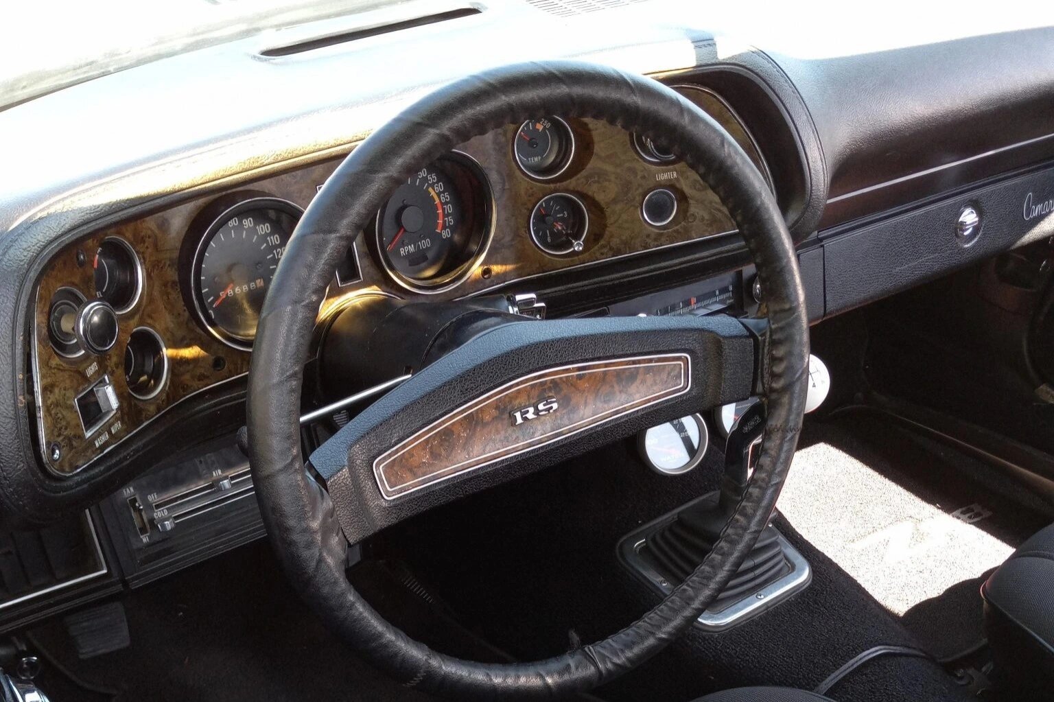 Aftermarket gauges for coolant temperature and oil pressure have been mounted below the dash.