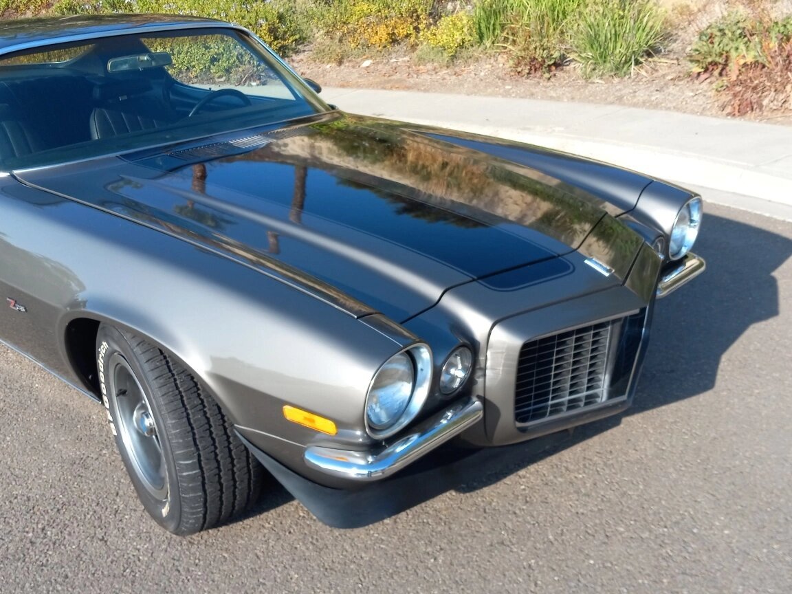 This 1970 Chevrolet Camaro Z/28 was built at the Norwood, Ohio, assembly plant and is finished in Shadow Gray with black stripes over black vinyl upholstery.