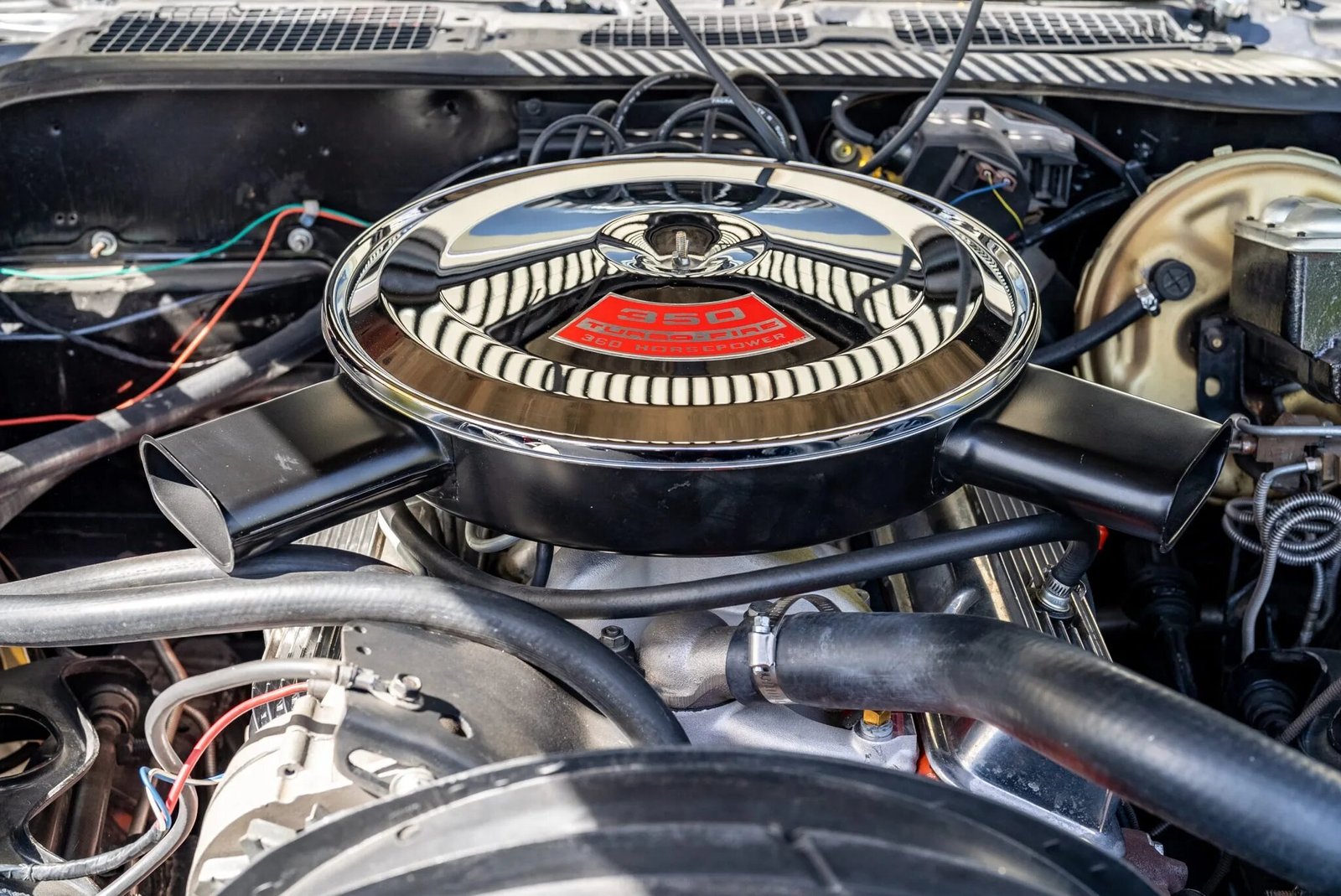The replacement 350ci LT1 V8 features an aluminum intake manifold and a Holley four-barrel carburetor.