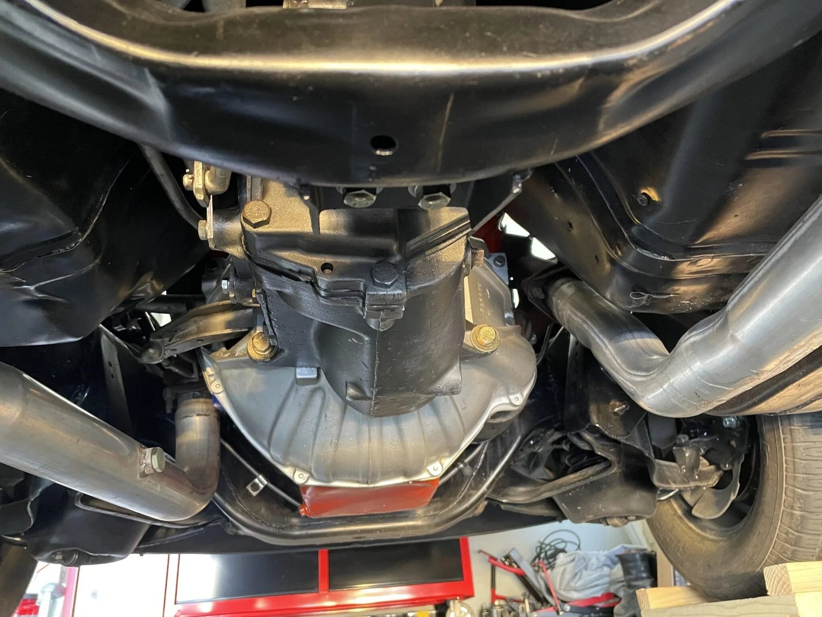 Power is sent to the rear wheels through a replacement Muncie four-speed manual transmission and a 3.73:1 Positraction rear end.