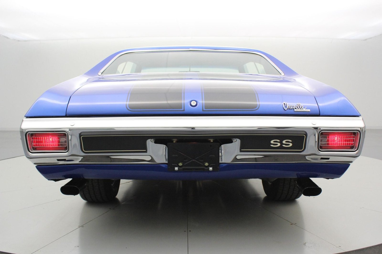 Exterior features include quadruple headlamps, SS 396 badging, side mirrors, a dual exhaust system with oblong exits, and chrome trim on the bumpers, wheel arches, and window surrounds.
