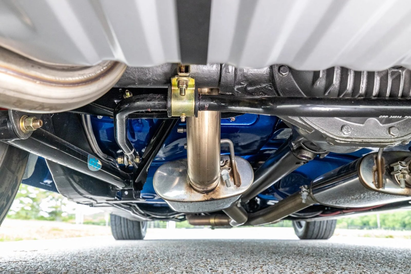 Power is delivered to the rear wheels through a 4L70-E four-speed automatic transmission and a 12-bolt rear end with a 3.42:1 Positraction locking differential and Strange Engineering axles.