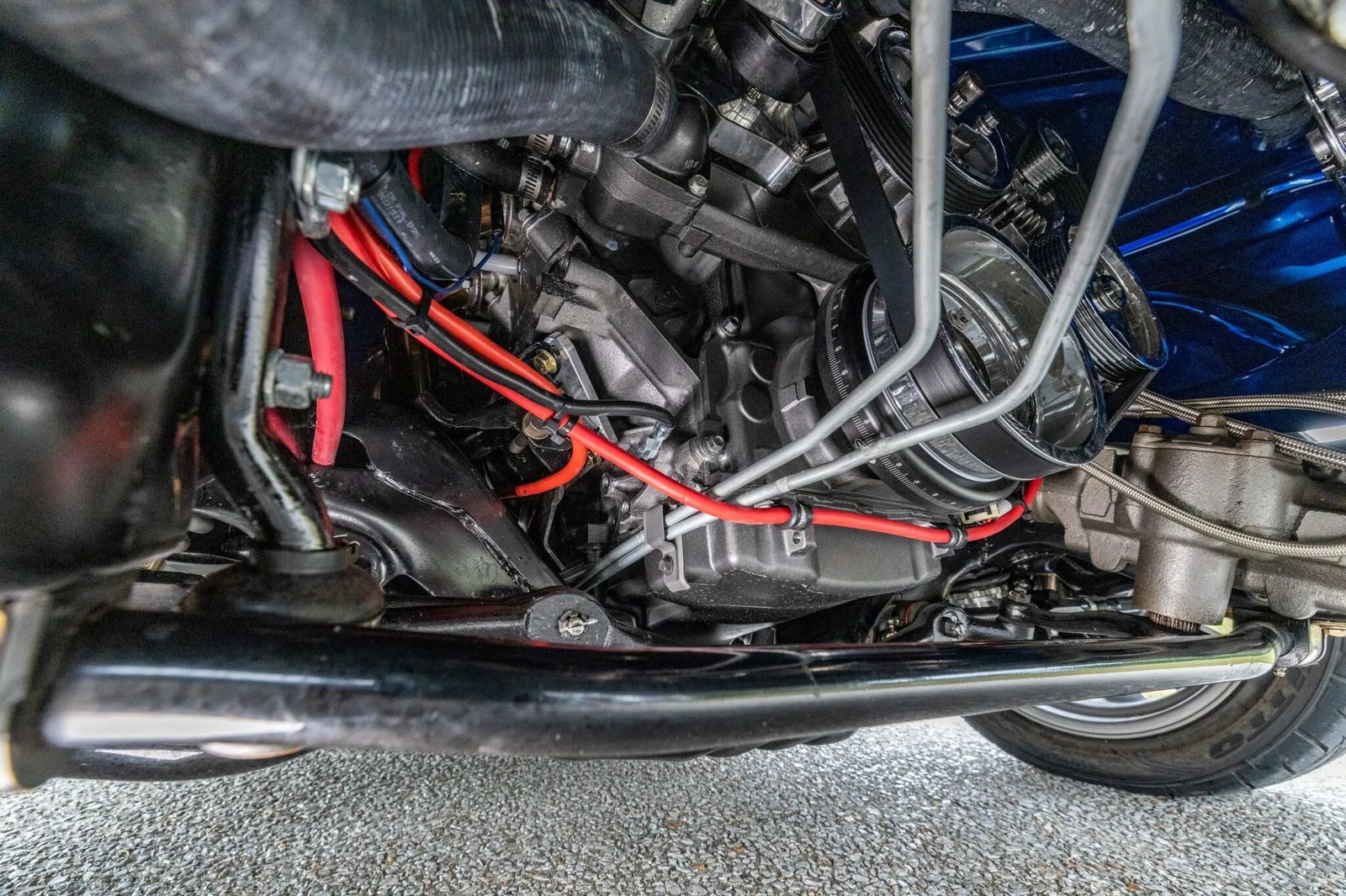 The car is equipped with a Classic Performance Products Stage 4 Pro Touring suspension package, which includes tubular front and rear control arms, front and rear sway bars, and adjustable coilover shocks on each corner.