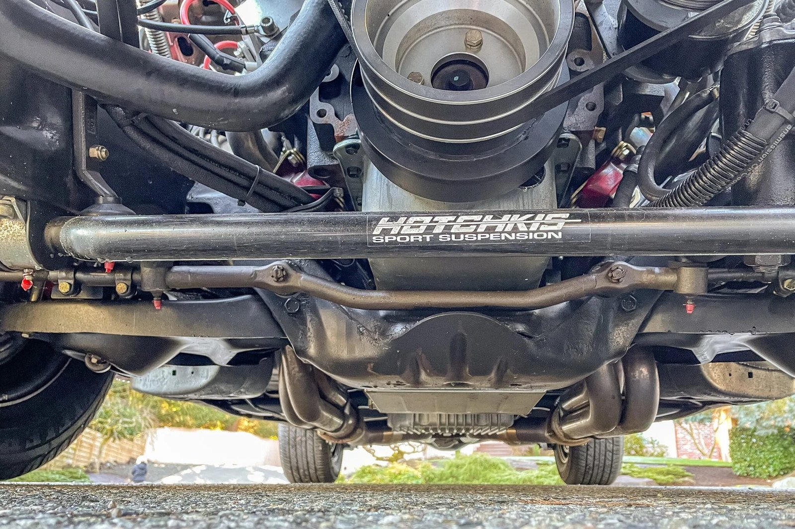 A Hotchkis sway bar is installed up front, while suspension modifications out back include installation of Currie Currectrac rear lower control arms and an upgraded sway bar.