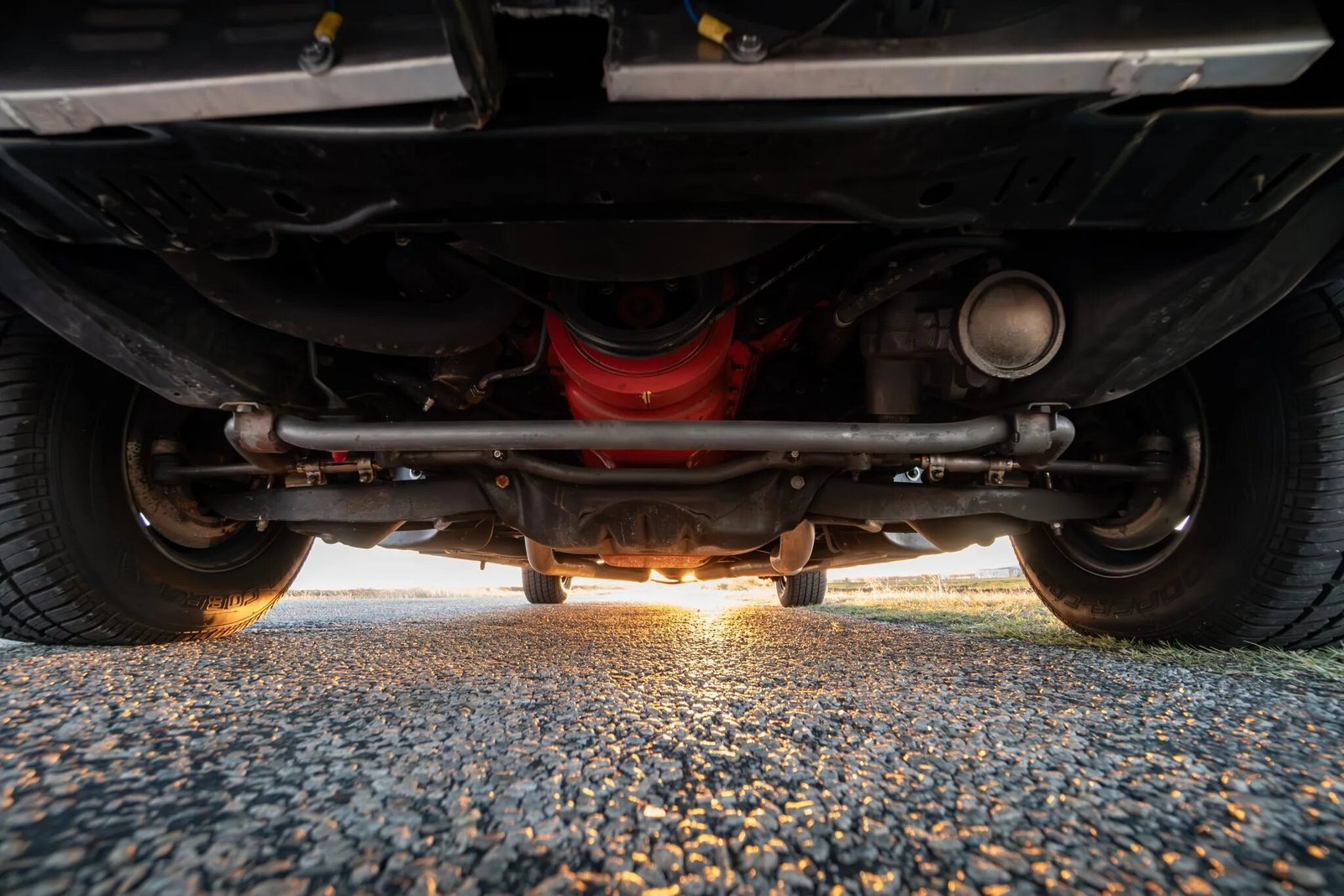 The 14″ Super Sport wheels wear chrome trim rings and are mounted with 215/70 Cooper Cobra Radial G/T tires. The car is equipped with power steering, and braking is handled by power-assisted front discs and rear drums.