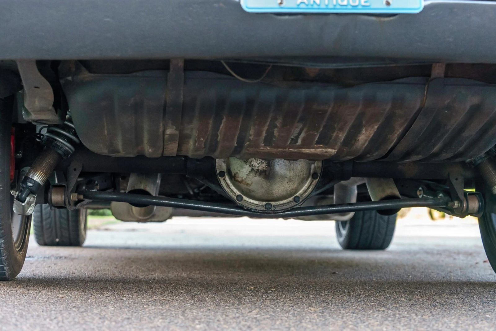 Power is delivered to the rear wheels through a four-speed manual transmission and a 10-bolt rear axle.