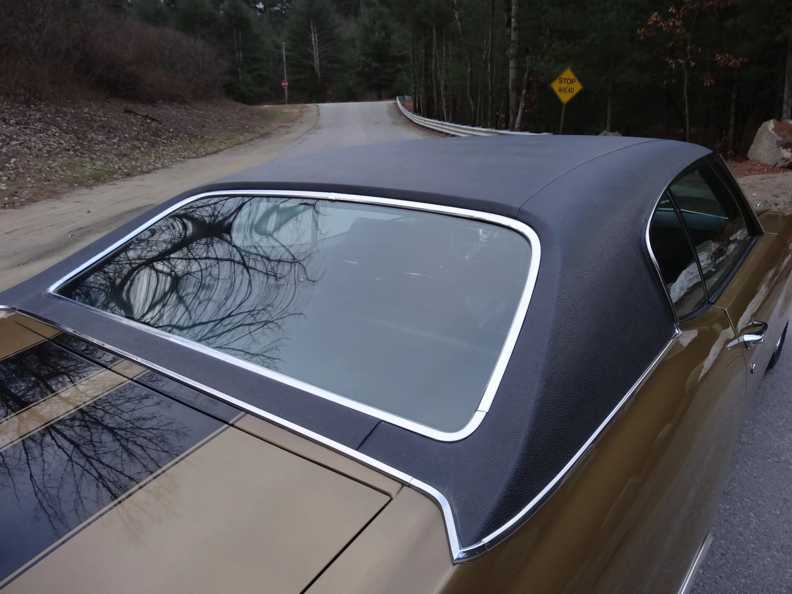 The body is finished in correct Autumn Gold (58) under a black vinyl roof and double racing stripes.