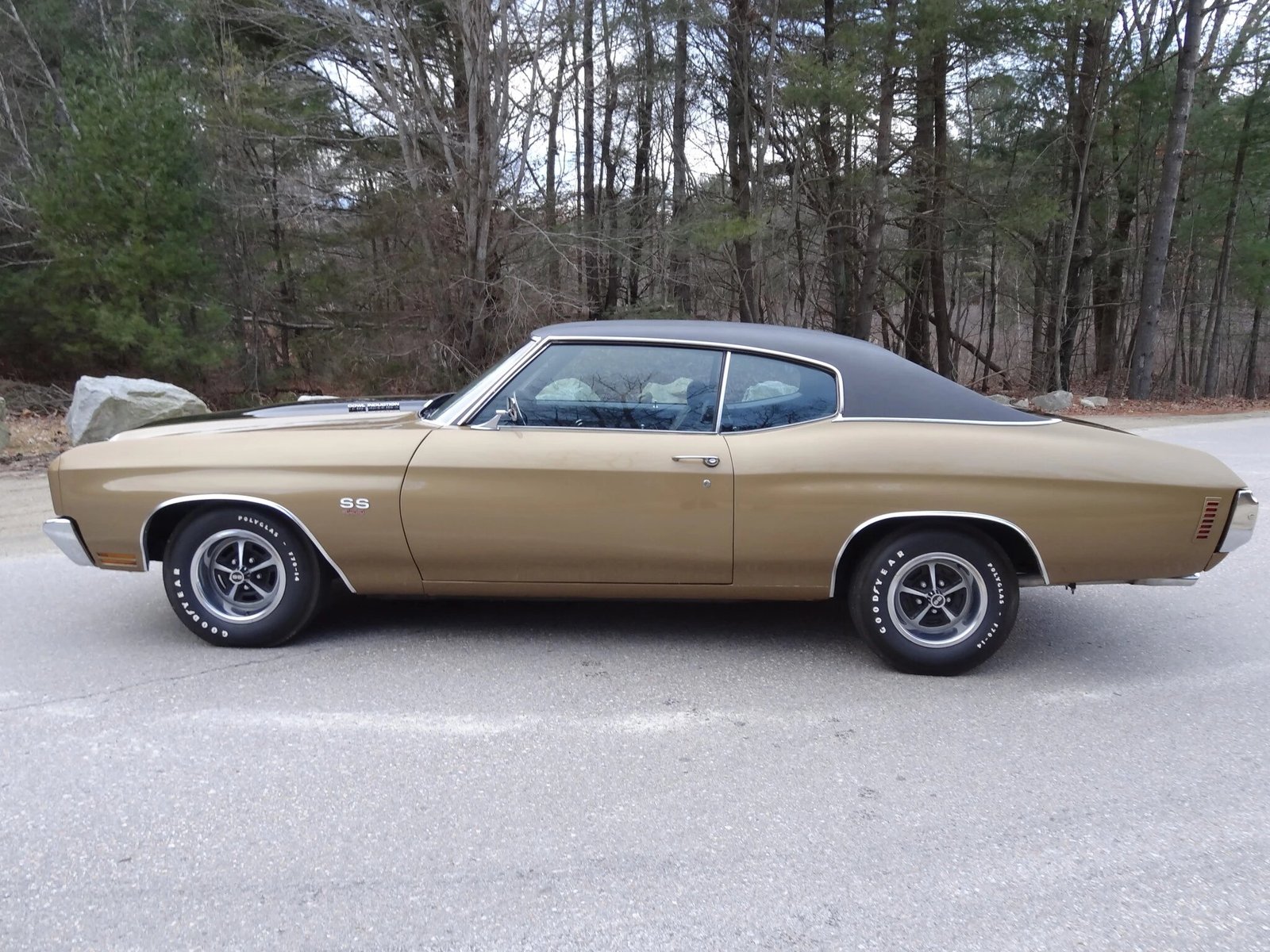 The car is powered by a numbers-matching 454ci LS6 V8 mated to a 3-speed automatic transmission and finished in Autumn Gold over a black interior.