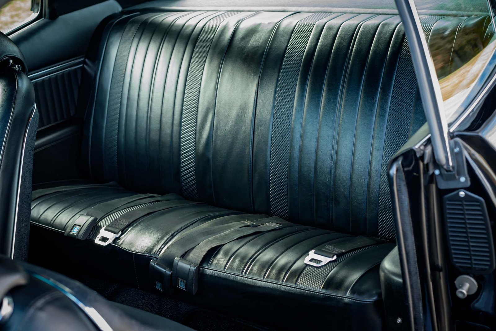 The vinyl seats are in great shape but did receive new seatbacks. A new carpet, floor mats, and headliner were installed along with door panels front and rear.