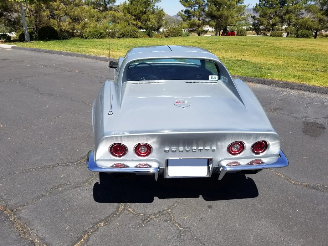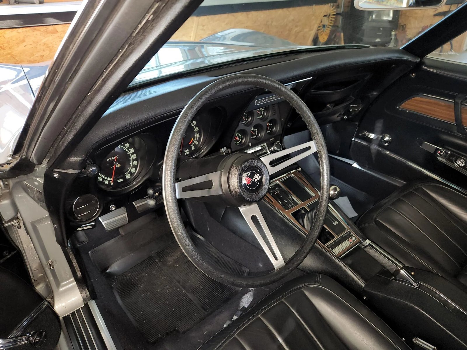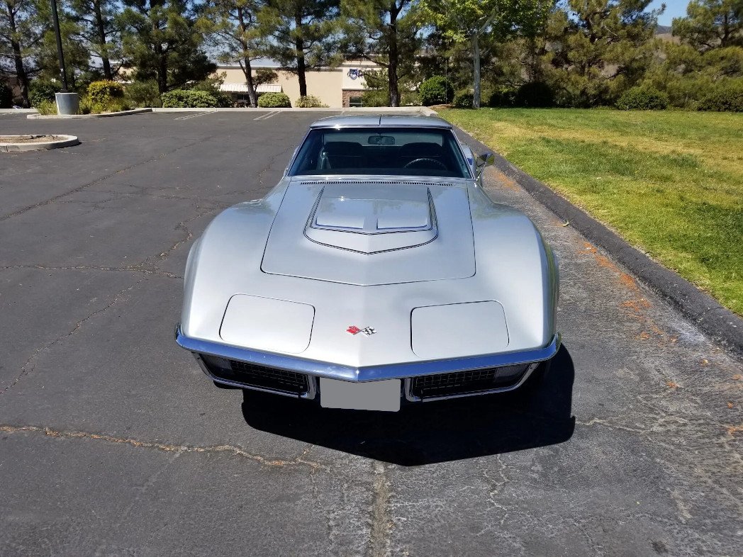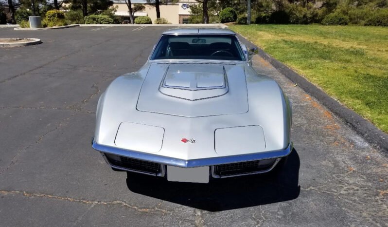 This 1970 Chevrolet Corvette is finished in Cortez Silver over black and is powered by a 350ci Turbo-Fire V8 paired with a four-speed manual transmission.