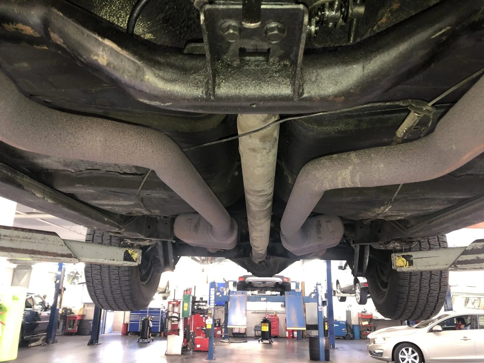 Modifications include an MSD distributor and ignition coil, tubular headers, and an aftermarket dual exhaust system.