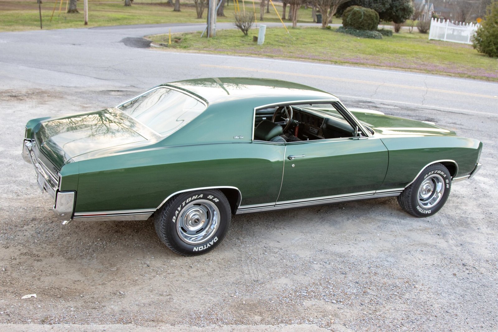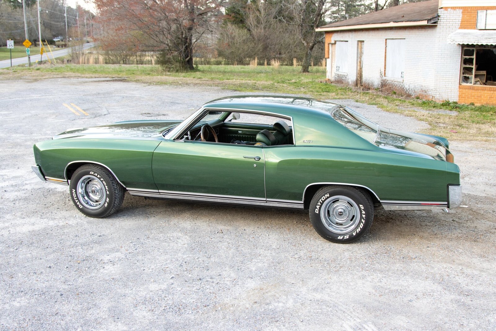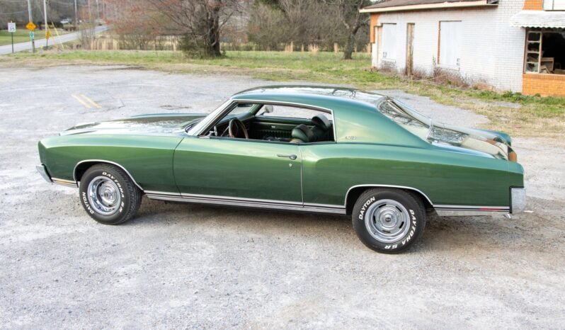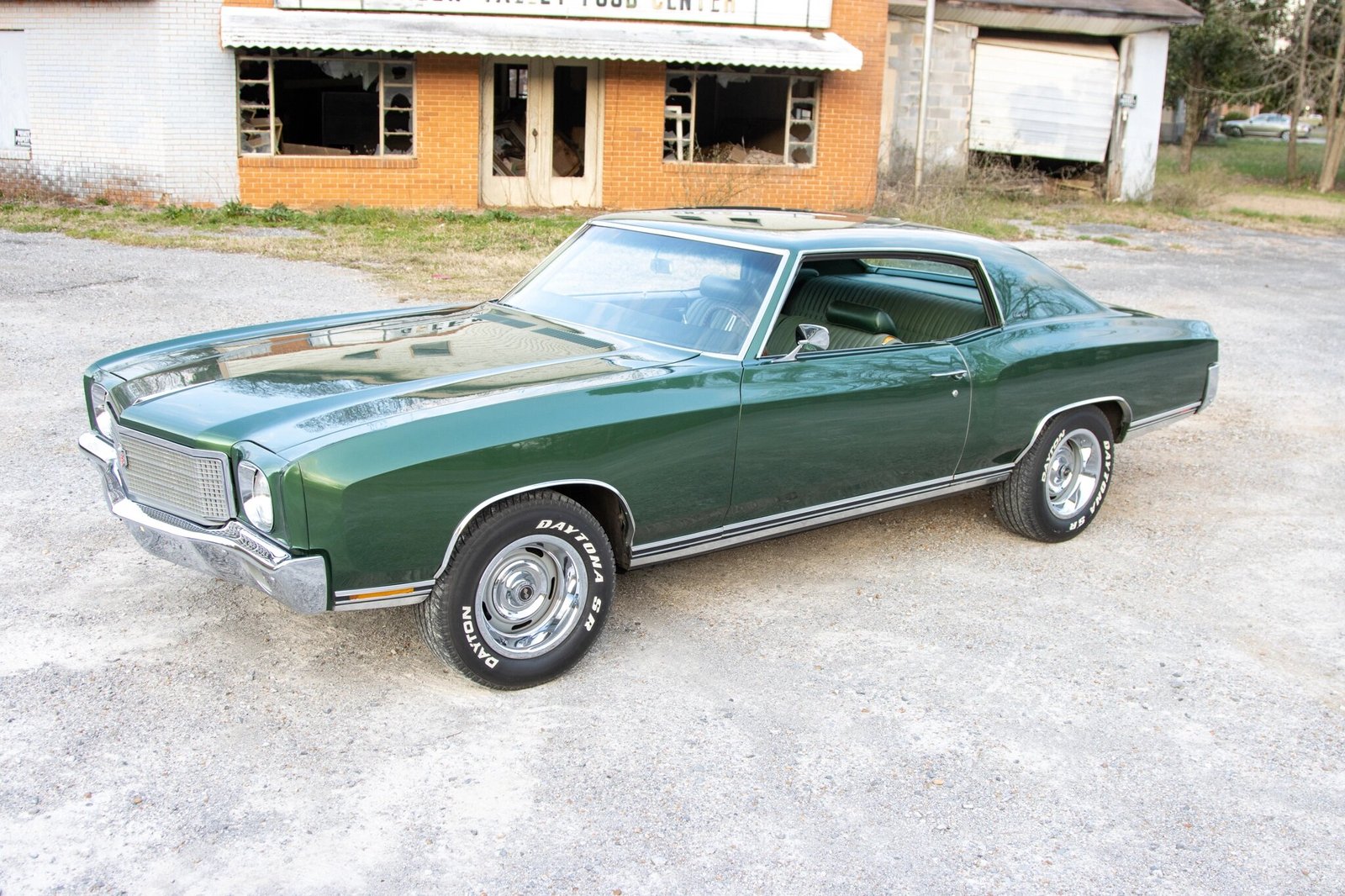This 1970 Chevrolet Monte Carlo is finished in green over a green cloth and vinyl interior and is powered by a 350ci V8 mated to a three-speed automatic transmission.