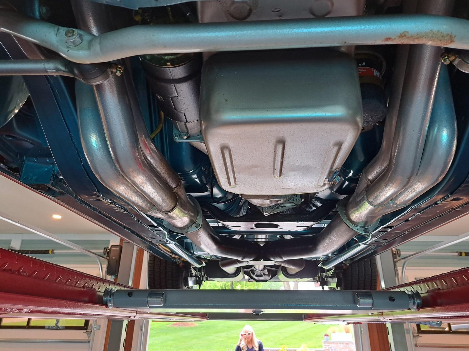The car was factory-finished in Tuxedo Black and was refinished in metallic turquoise.