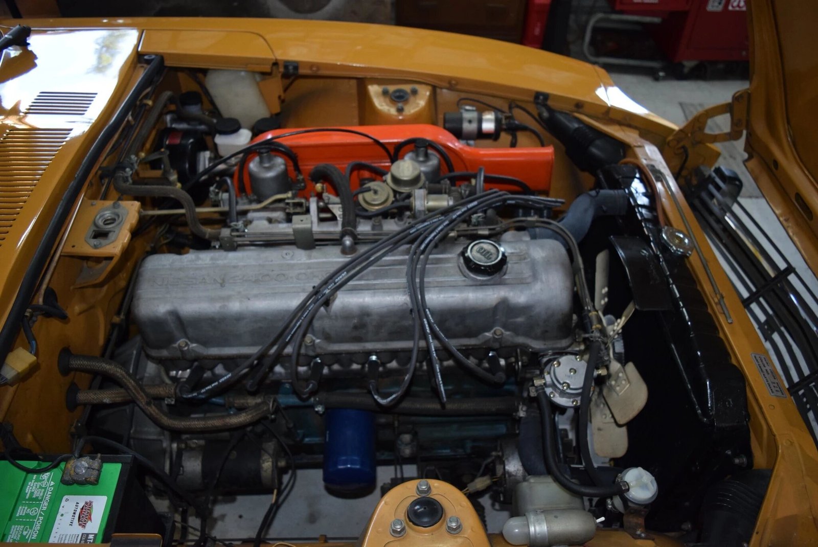 The 2.4-liter L24 inline-six was rated at 151 horsepower and 145 lb-ft of torque when new. Induction is handled by dual SU carburetors, and power is sent to the rear wheels through a four-speed manual transmission.