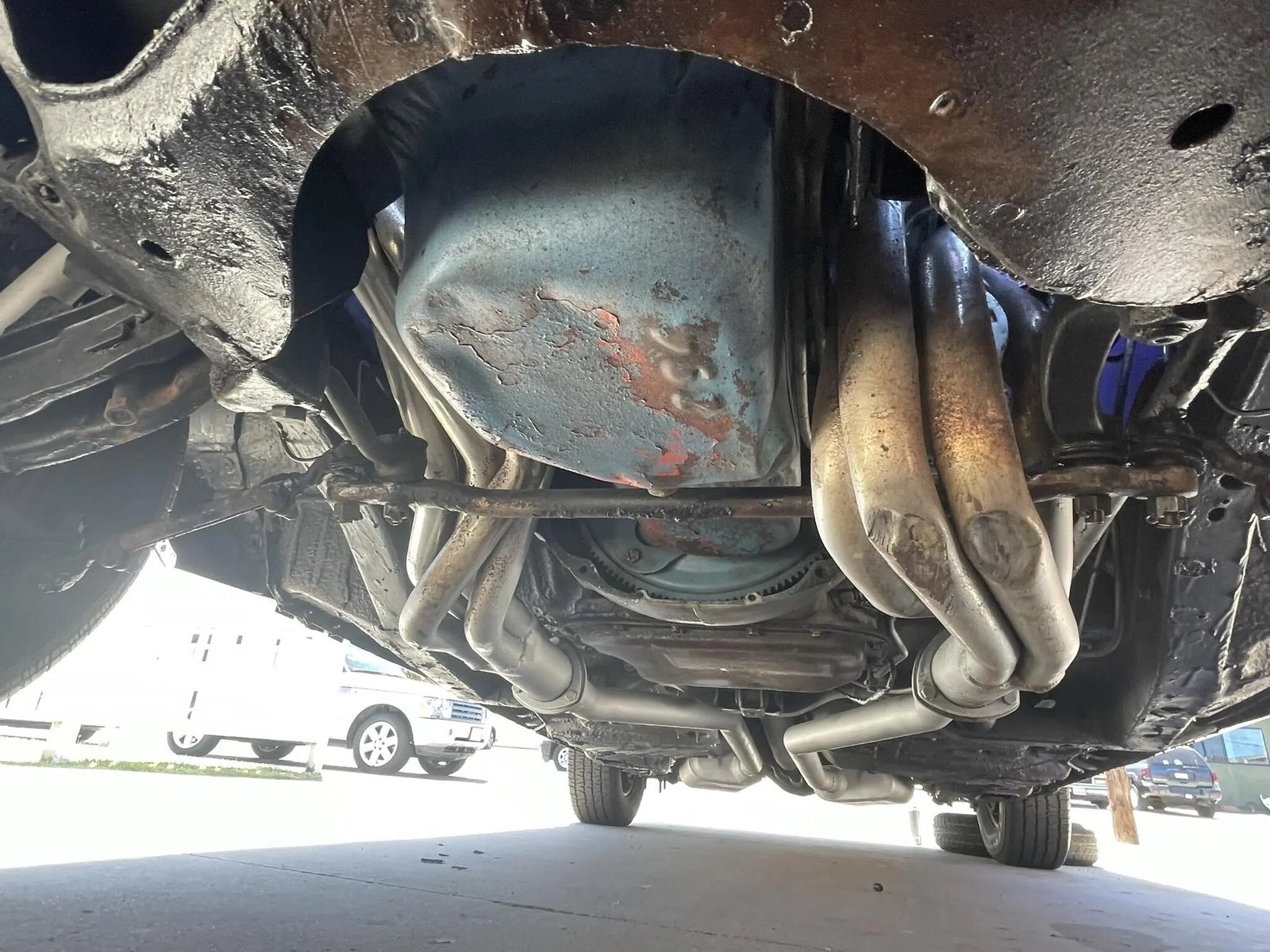 The 318ci V8 is equipped with Mopar-branded finned aluminum valve covers, and additional modifications included an Edelbrock camshaft, intake manifold, and 600-cfm four-barrel carburetor.